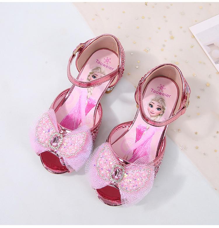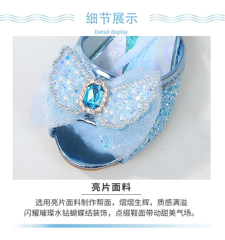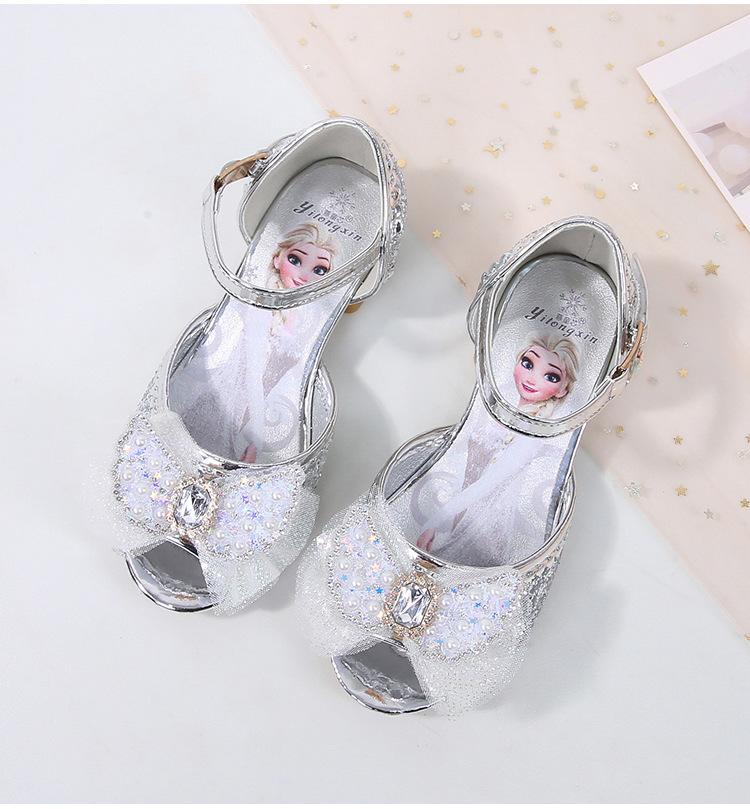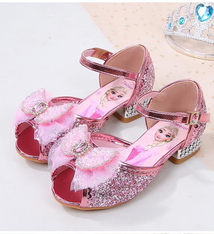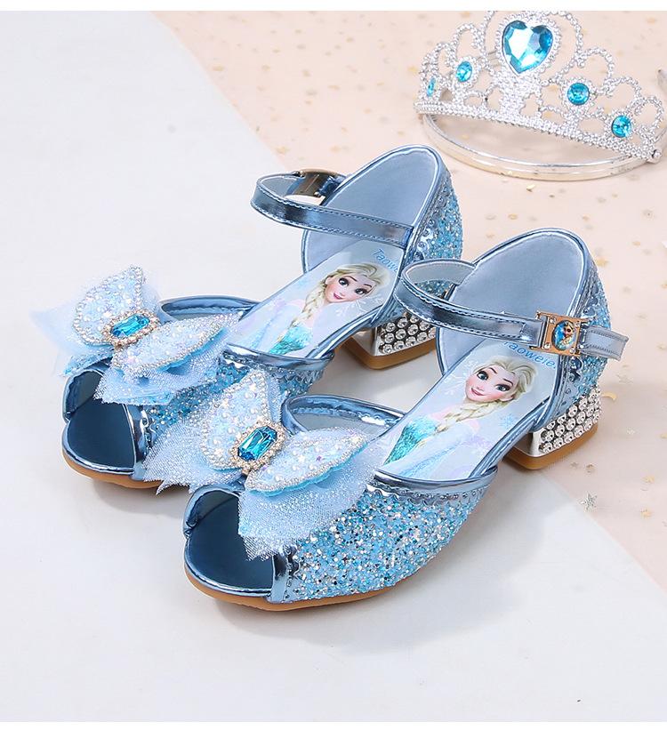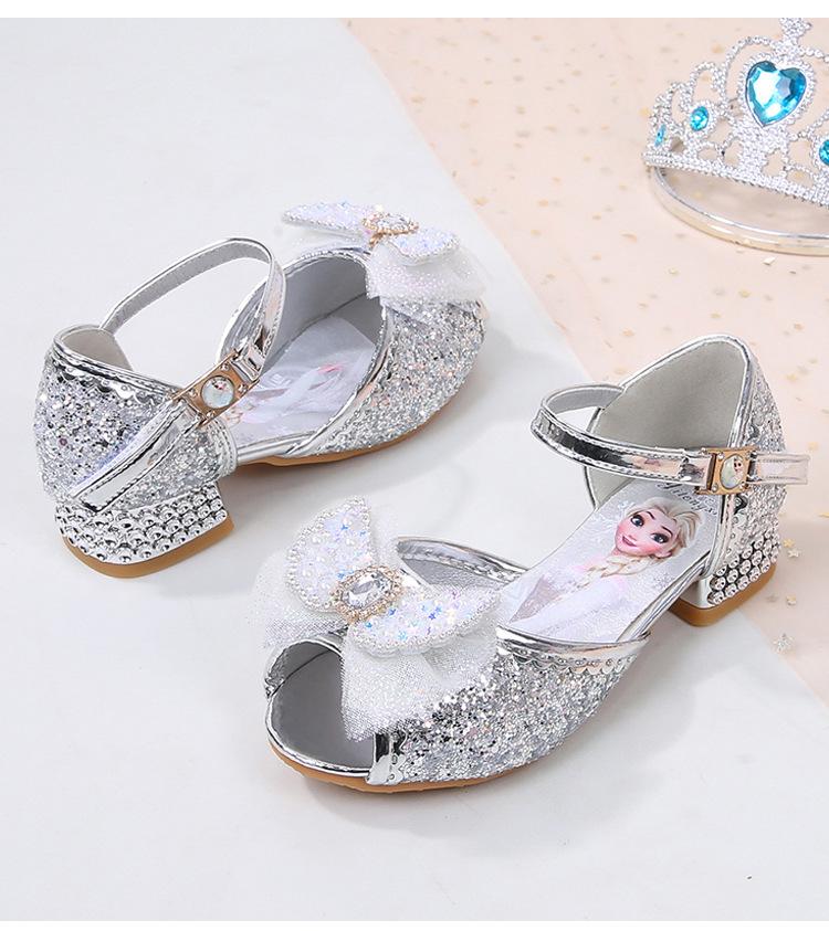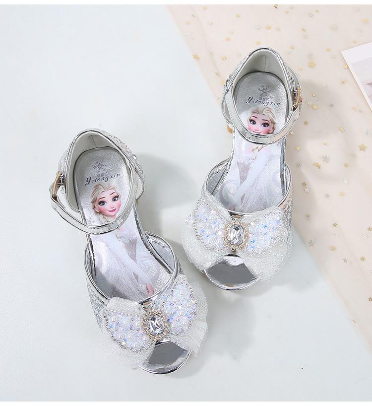 Zapatos de Tacón Alto para Niñas, Sandalias de Verano, Zapatos de Princesa Elsa, Zapatos de Cristal con Lentejuelas para Niños, Zapatos de Moda de Suela Blanda para Niños, Zapatos de Verano