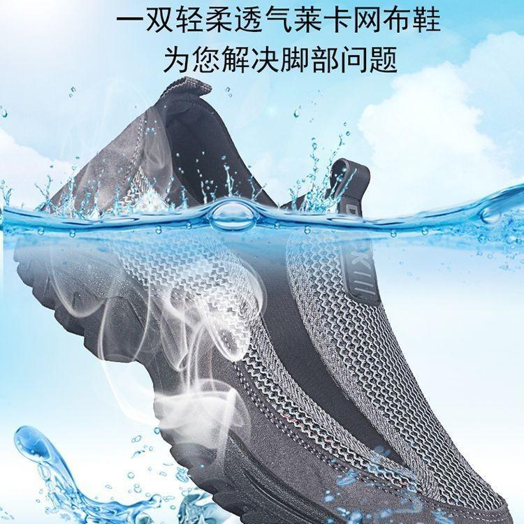 Zapatos de Tela de Pekín Antiguos Zapatos de Hombre Verano Transpirables Deportivos Casuales Zapatos de Malla Suela Blanda Antideslizantes Zapatos de Malla para Papás de Mediana Edad y Mayores