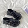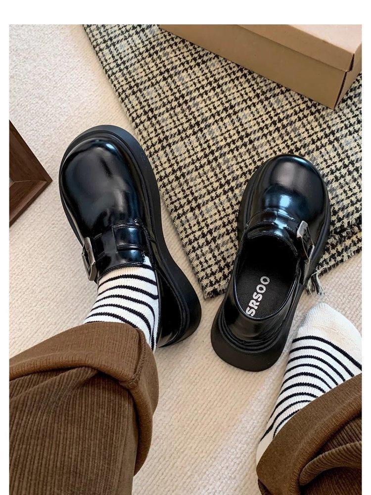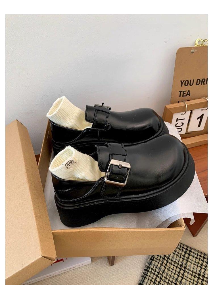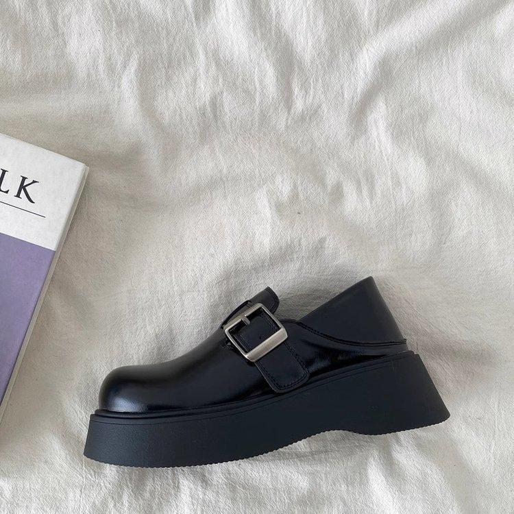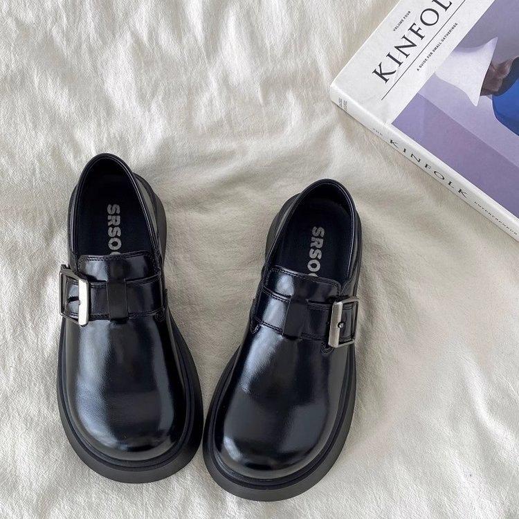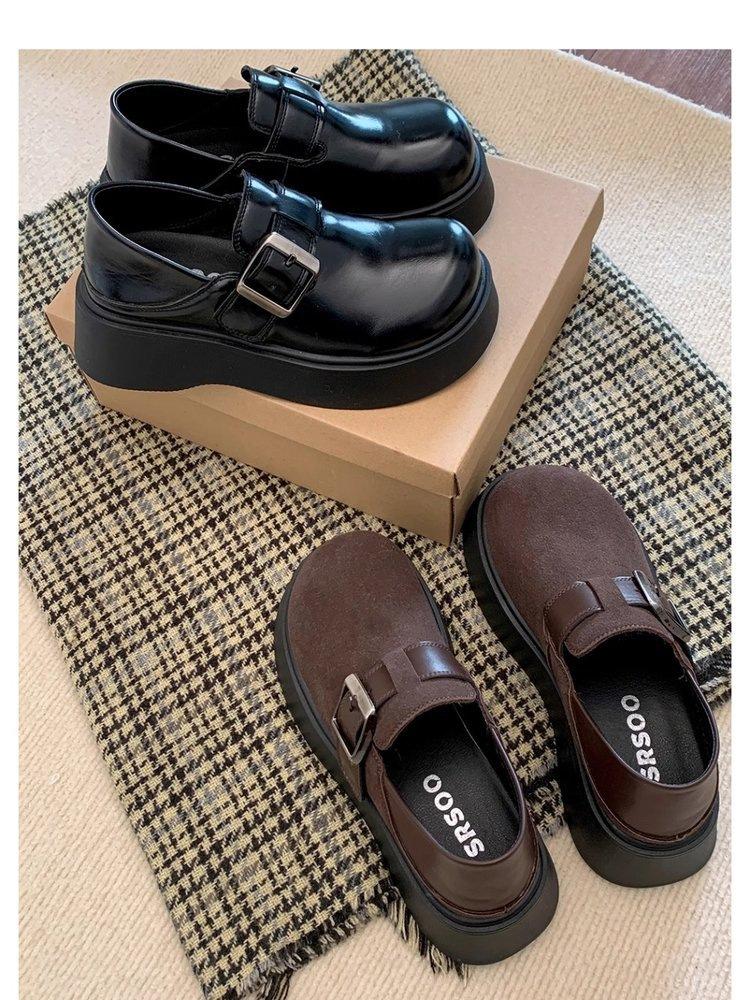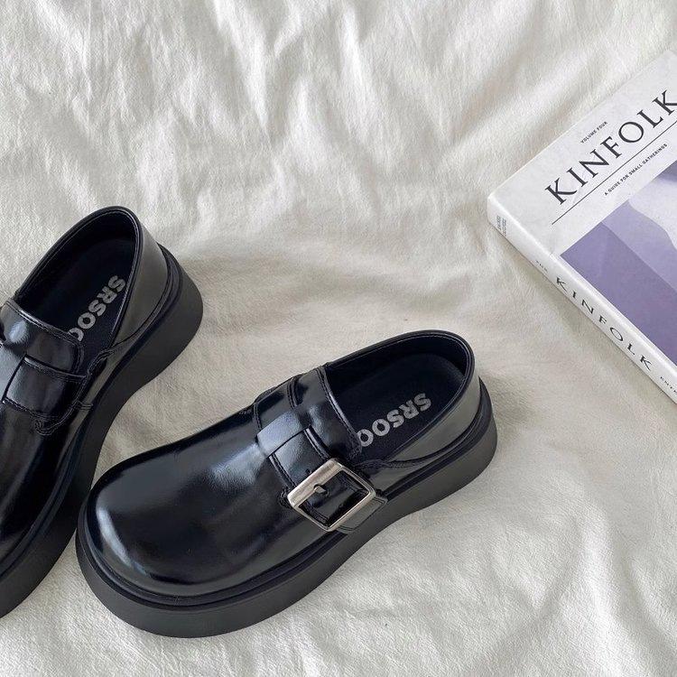 Zapatos Burcan de plataforma negros vintage, zapatos pequeños de cuero para mujer, nuevos zapatos de primavera 2025, mocasines de una sola capa que combinan con todo.