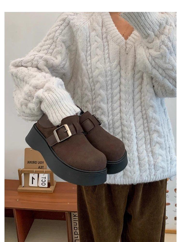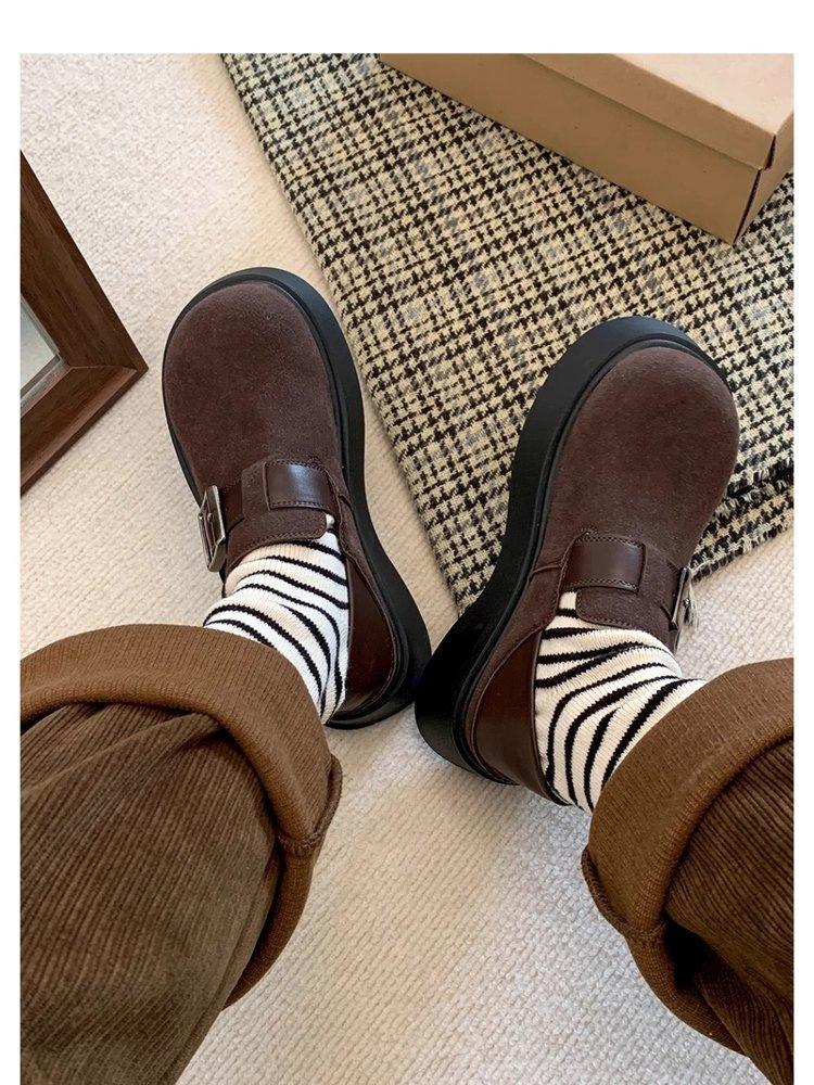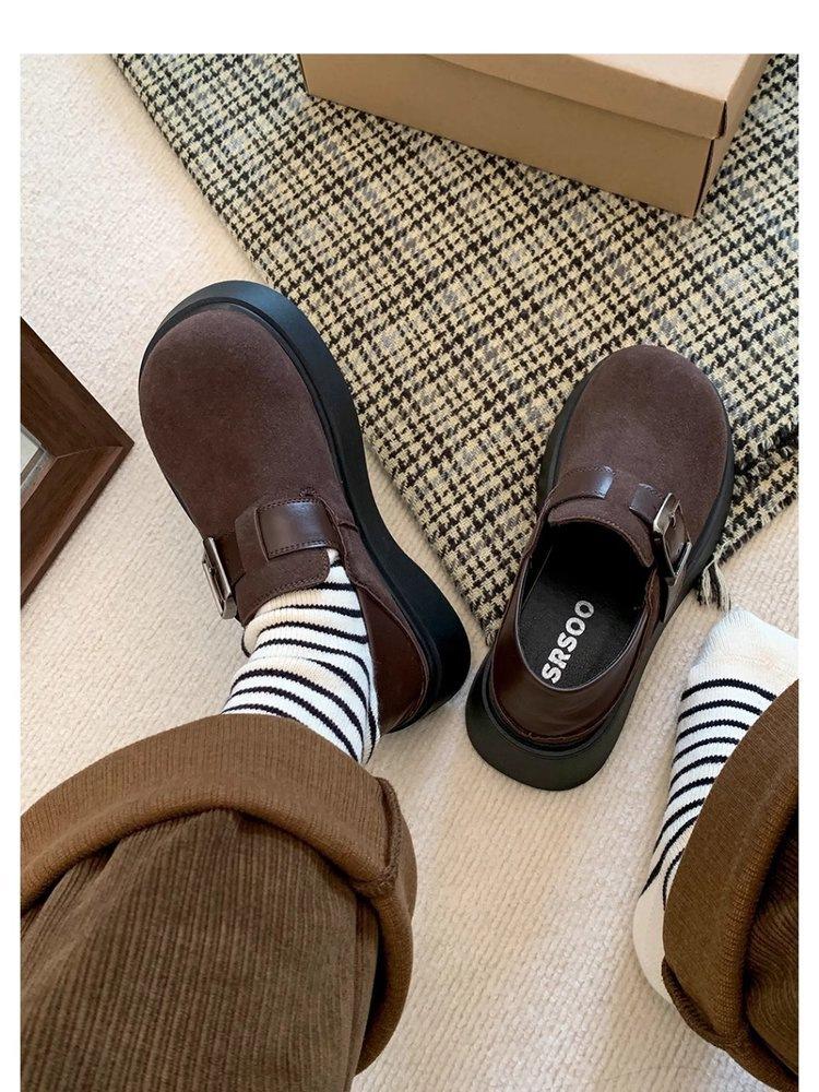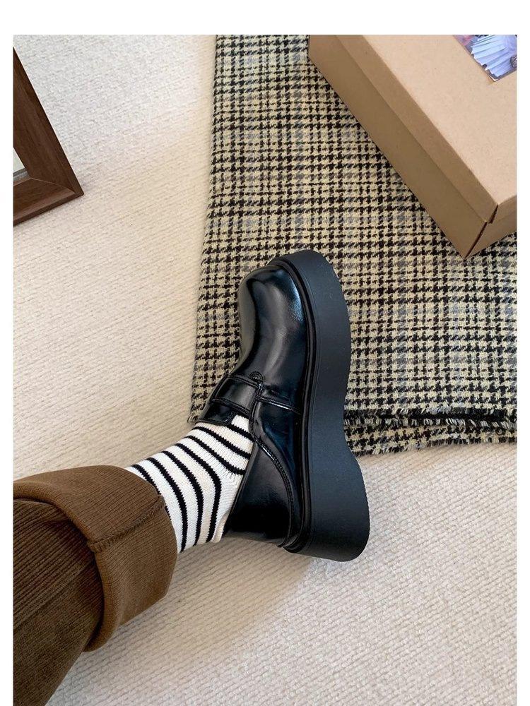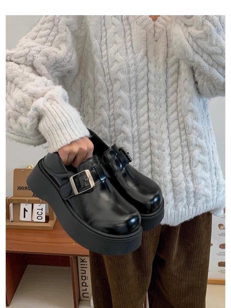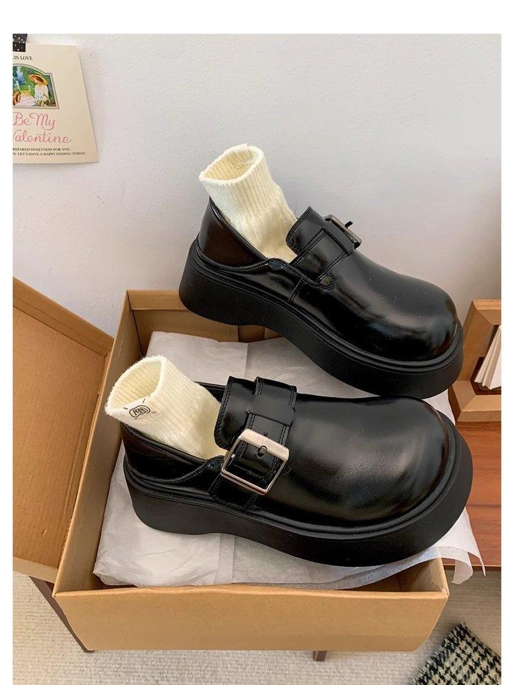Zapatos Burcan de plataforma negros vintage, zapatos pequeños de cuero para mujer, nuevos zapatos de primavera 2025, mocasines de una sola capa que combinan con todo.