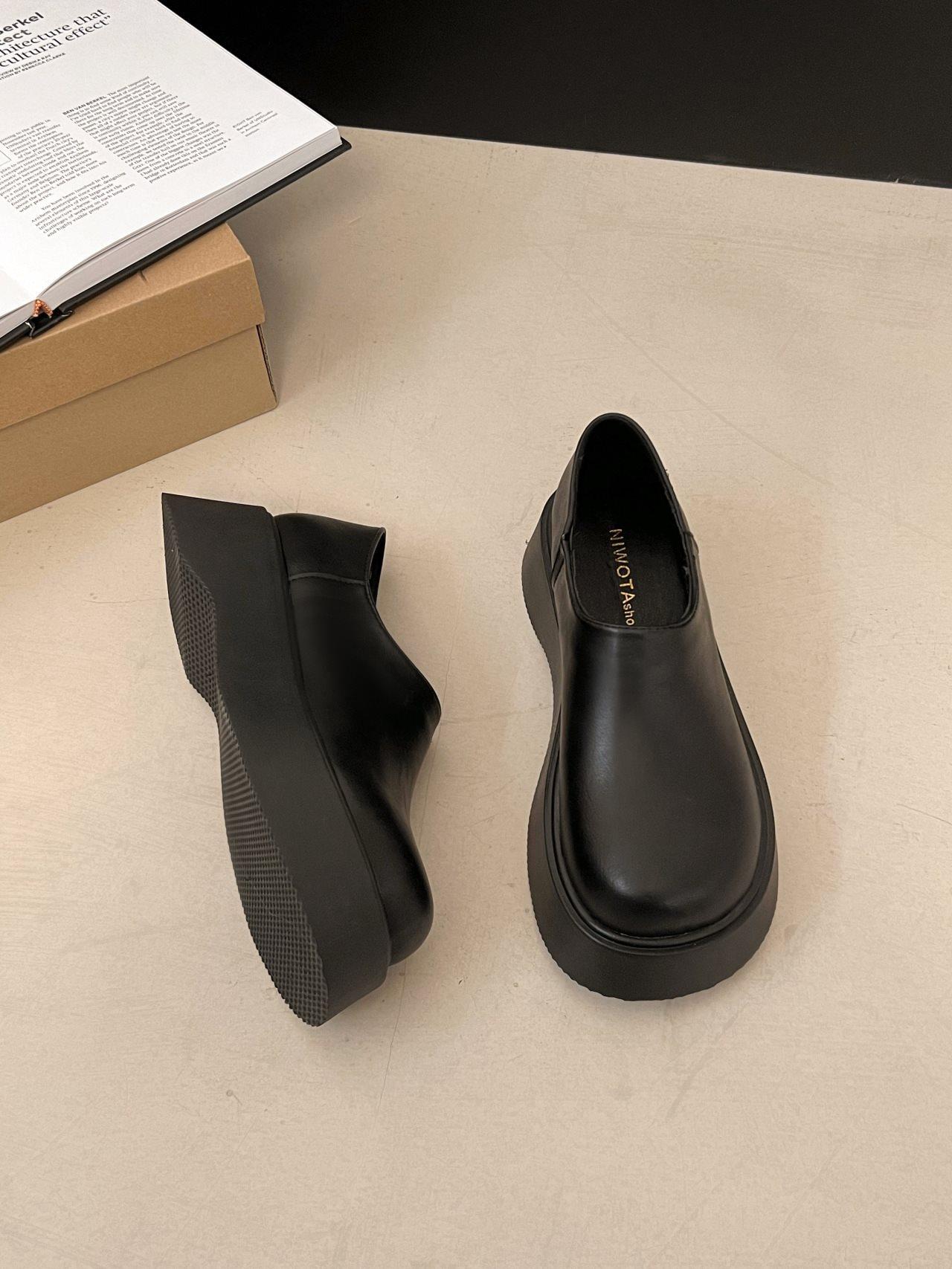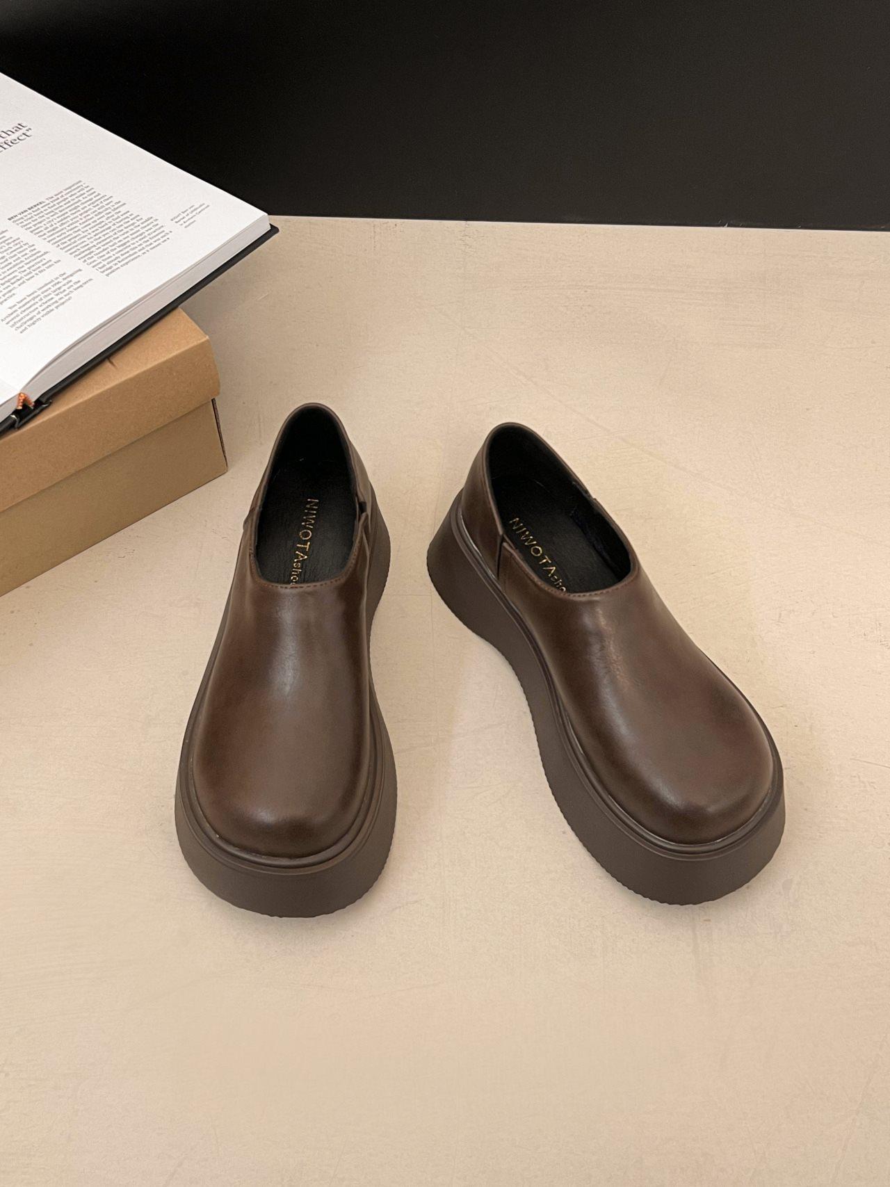 2025 Primavera Nuevo Estilo Plataforma Zapatos de Plataforma Zapatos de Cuero Pequeños de Moda para Mujer Versátiles Mocasines Antideslizantes