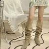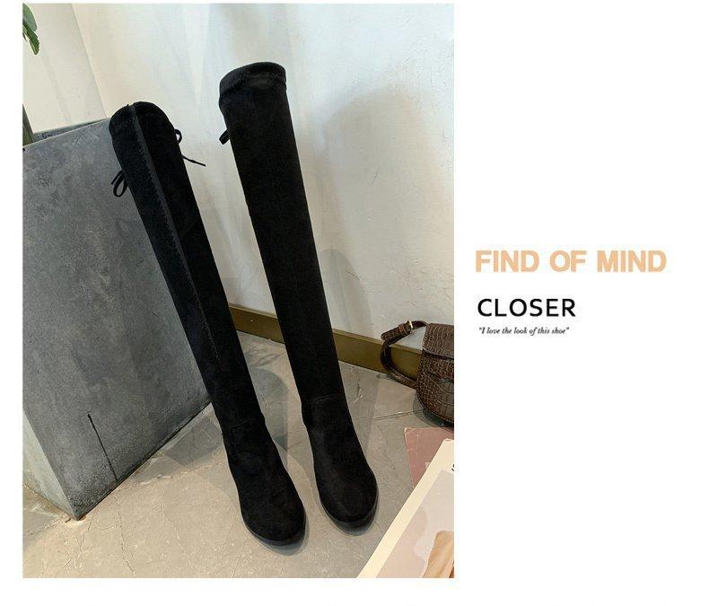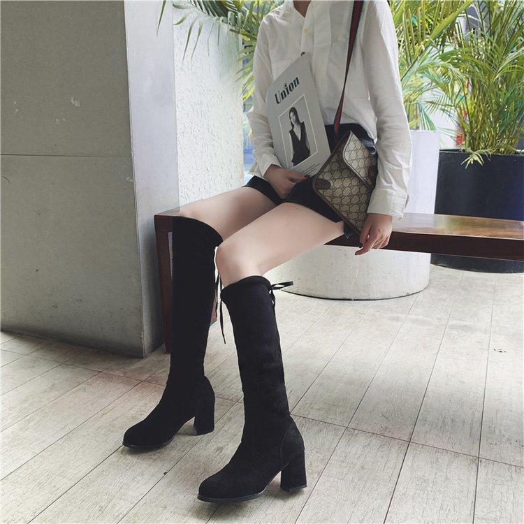 Botas por encima de la rodilla para mujer, de caballero, de gamuza, con tacón grueso, cordones, de felpa sintética, de tubo alto, de gamuza, con punta redonda y tacón alto.