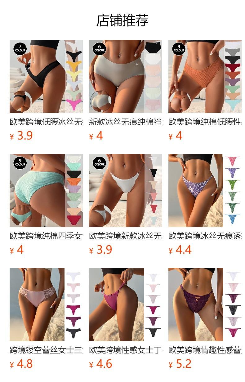 Europa y Estados Unidos transfronterizo puro seda de hielo negro tanga sin costuras para mujer sexy sexy cintura baja algodón transpirable ropa interior de tentación damas
