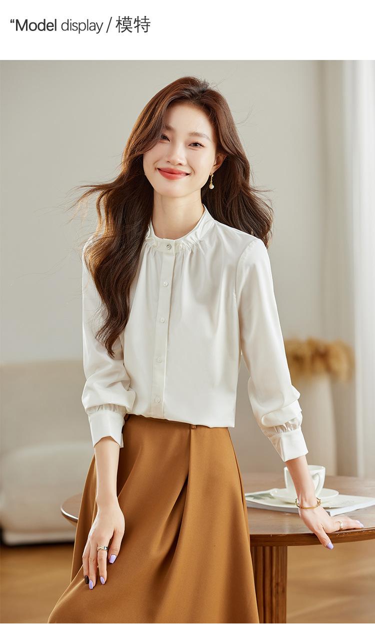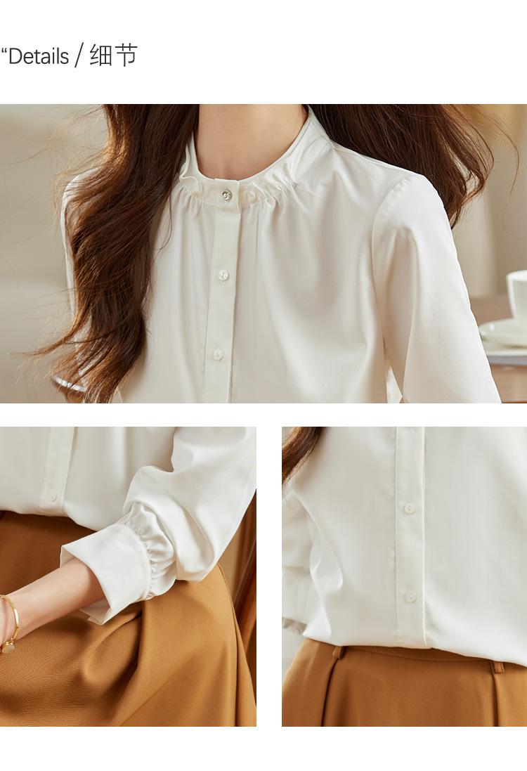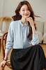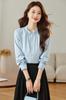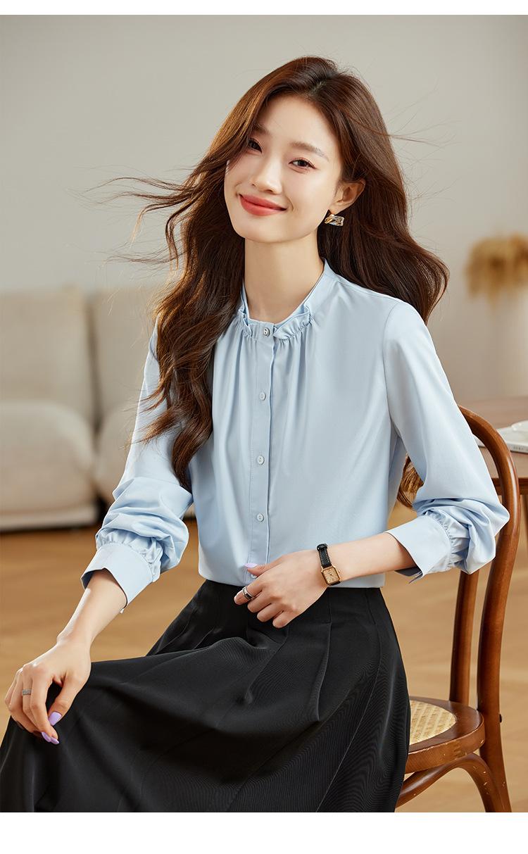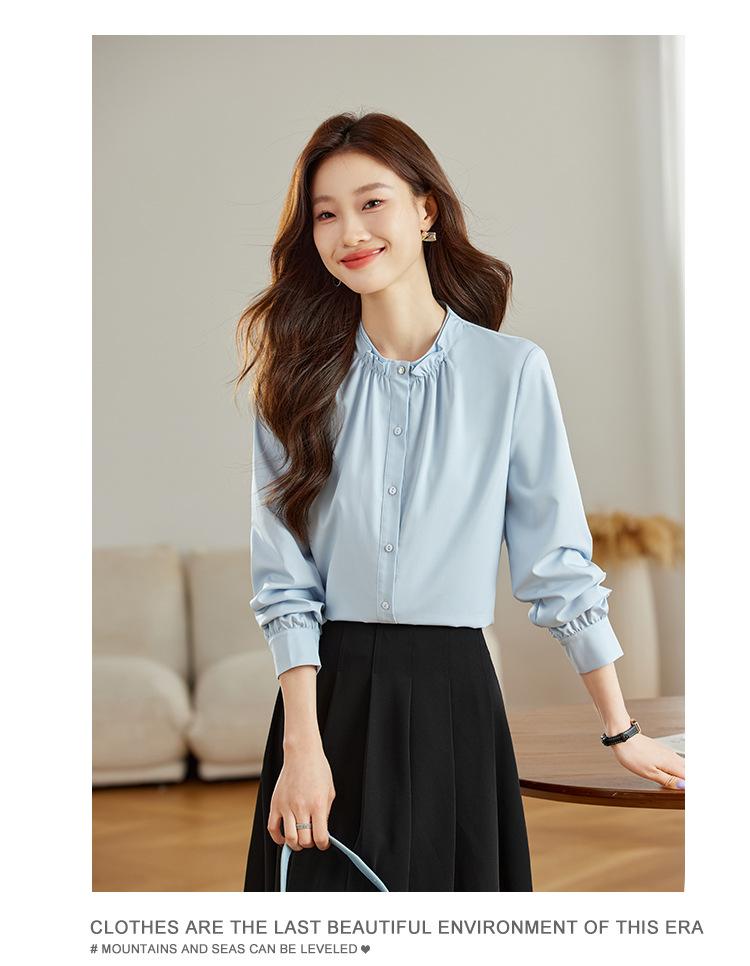 Camisa de manga larga con cuello alto azul de Real Shot 2025 para mujer, para entrevistas, camisa blanca para ir al trabajo