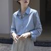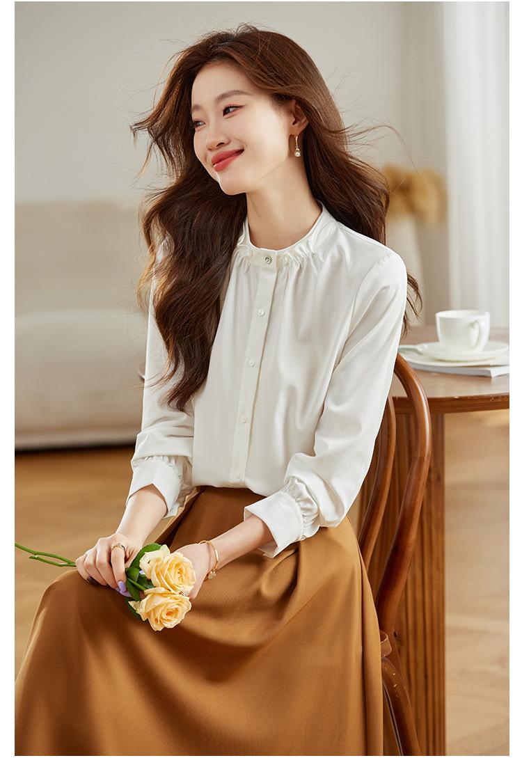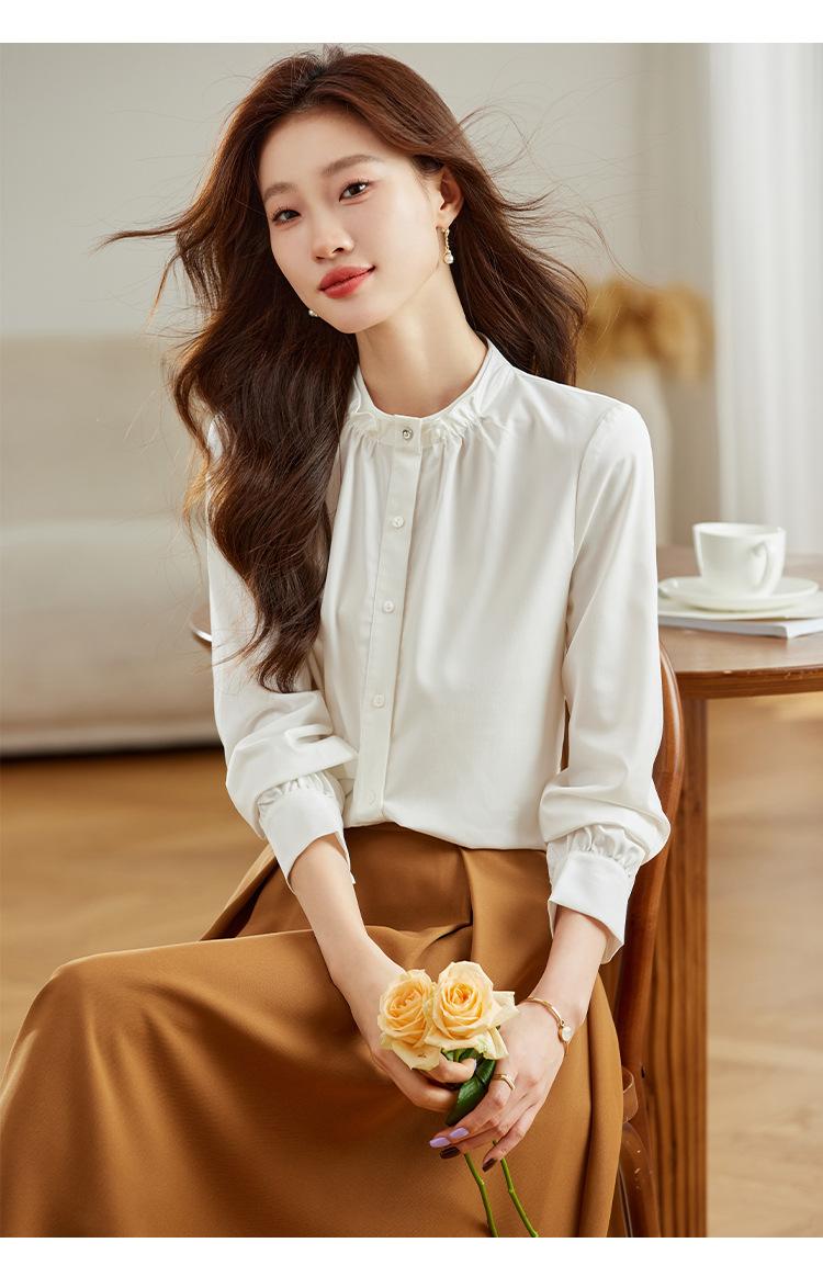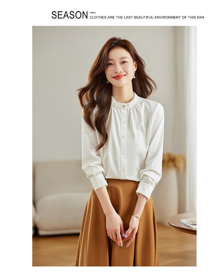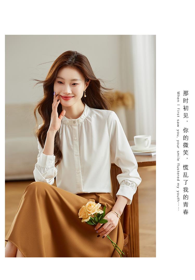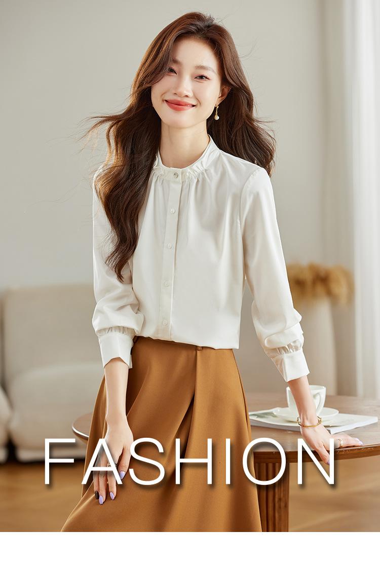 Camisa de manga larga con cuello alto azul de Real Shot 2025 para mujer, para entrevistas, camisa blanca para ir al trabajo