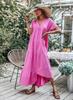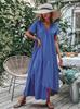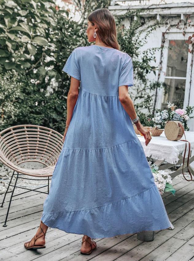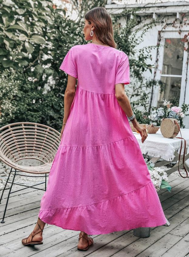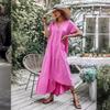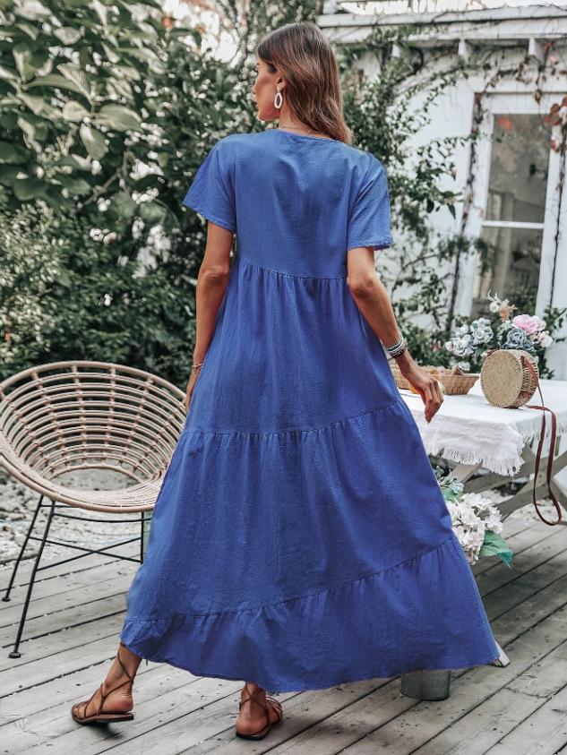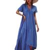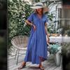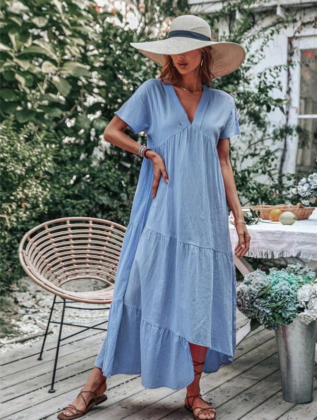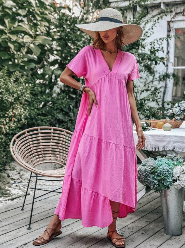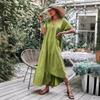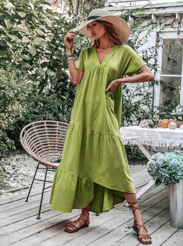 Vestido largo de algodón y lino de manga corta irregular con cuello en V de Amazon para mujer europea y americana de comercio exterior transfronterizo 2024