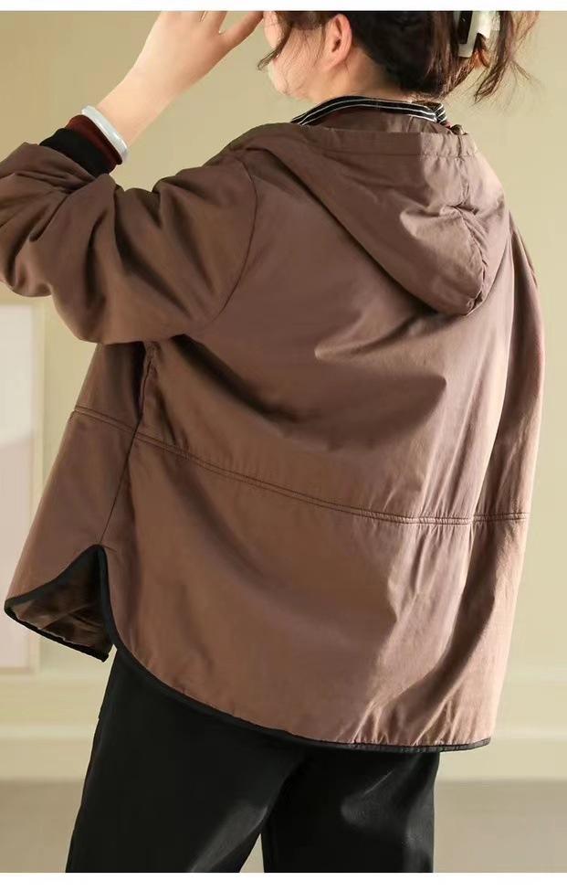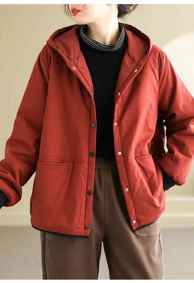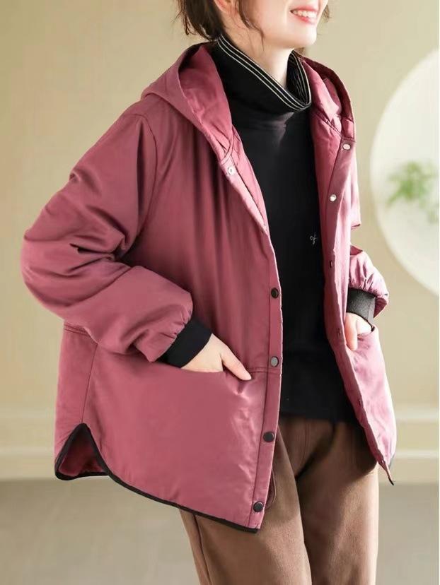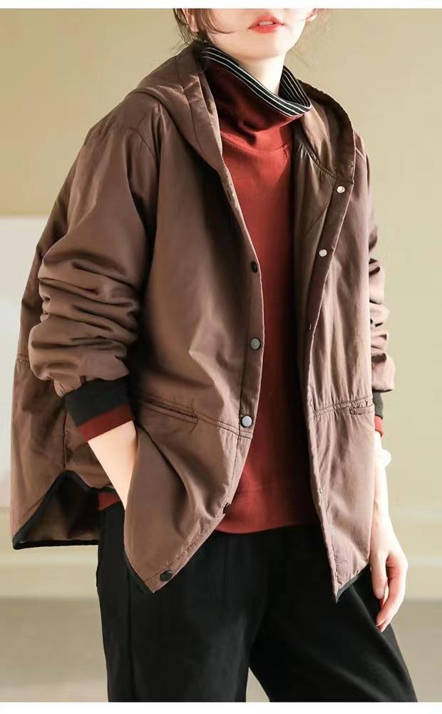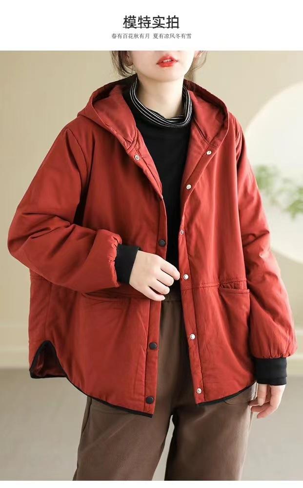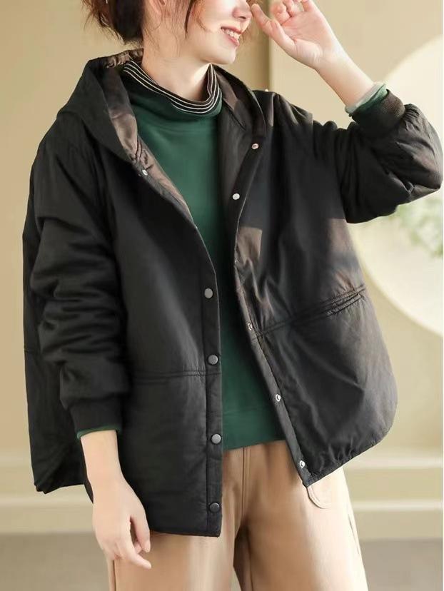 Abrigo de algodón con capucha vintage para mujer, otoño e invierno 2024, nuevo abrigo corto de algodón holgado, informal, grueso y cálido.
