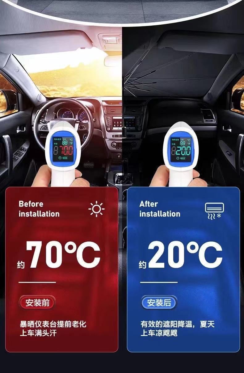 Características del producto: Diseño telescópico tipo paraguas, fácil de usar, no requiere instalación, apertura y cierre rápidos para guardar; proceso de revestimiento protector solar con pegamento plateado, fuerte reflexión de la luz solar, reduciendo la temperatura dentro del coche, retrasando el envejecimiento de los accesorios del coche, protegiendo su coche; dos parasoles grandes y pequeños, adecuados para una variedad de modelos de coche; un paraguas para múltiples usos, además de parasol para el coche, se puede usar para respuesta de emergencia en días lluviosos y protección solar temporal, ¡muy práctico!