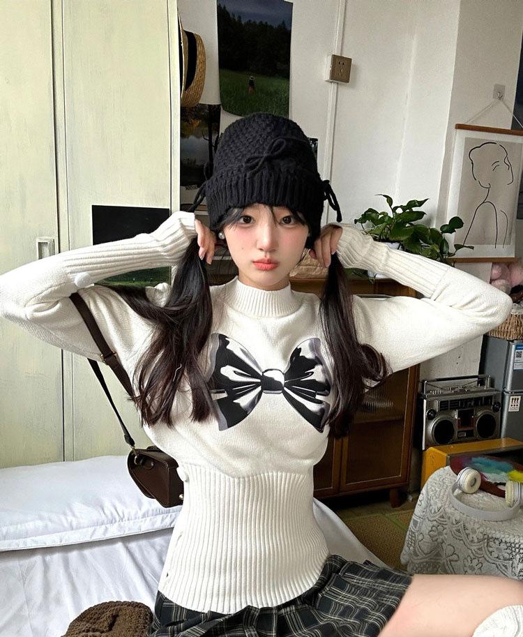 Suéter de cuello alto medio con lazo en la cintura estilo americano para mujer, suéter interior de manga larga para otoño e invierno, diseño superior Sense