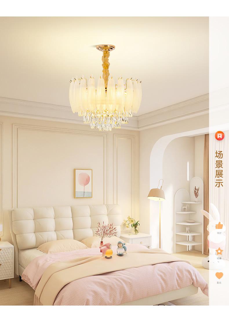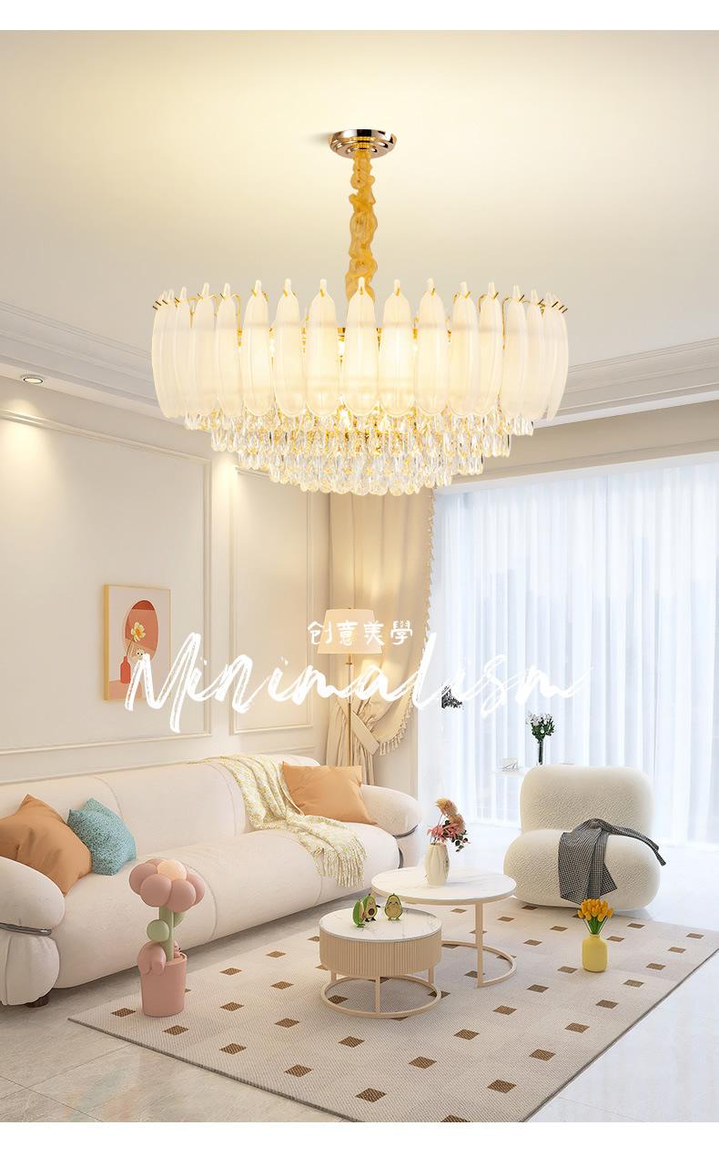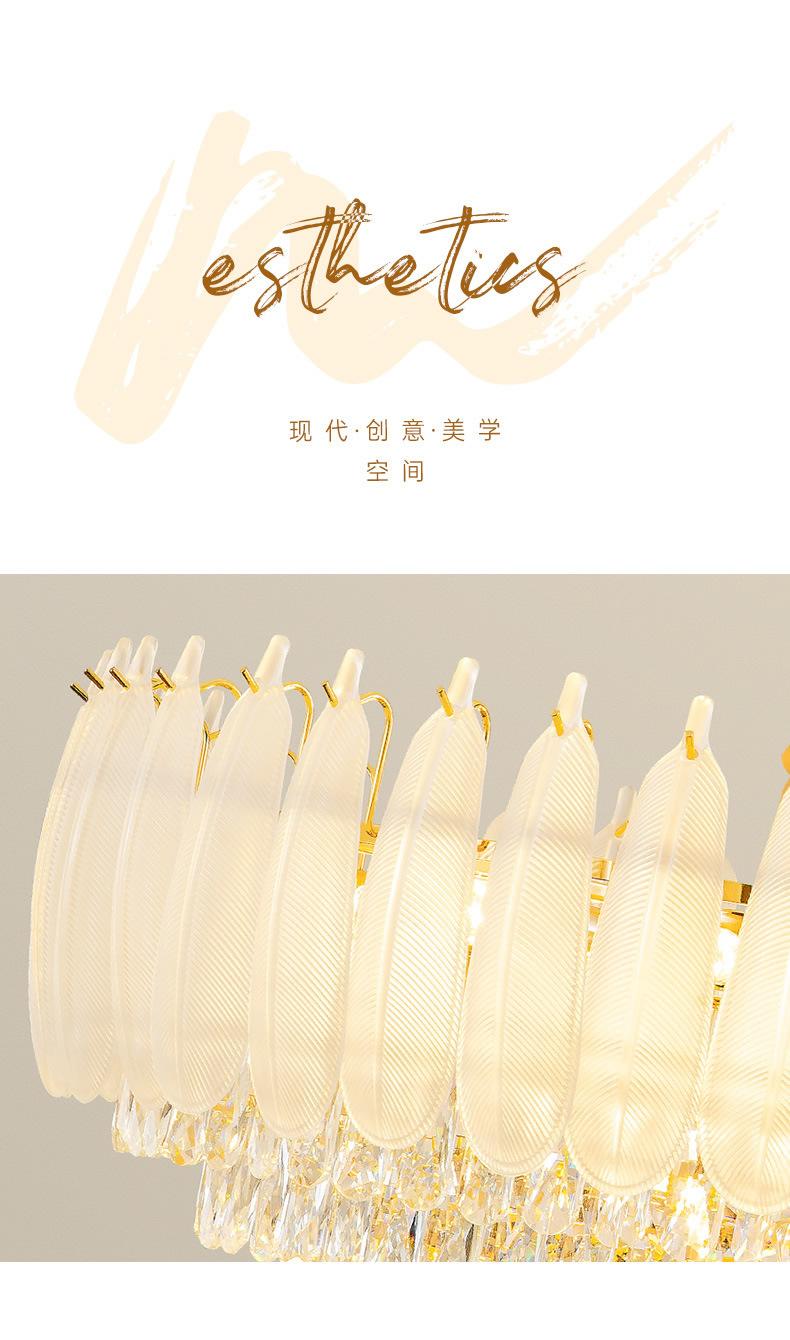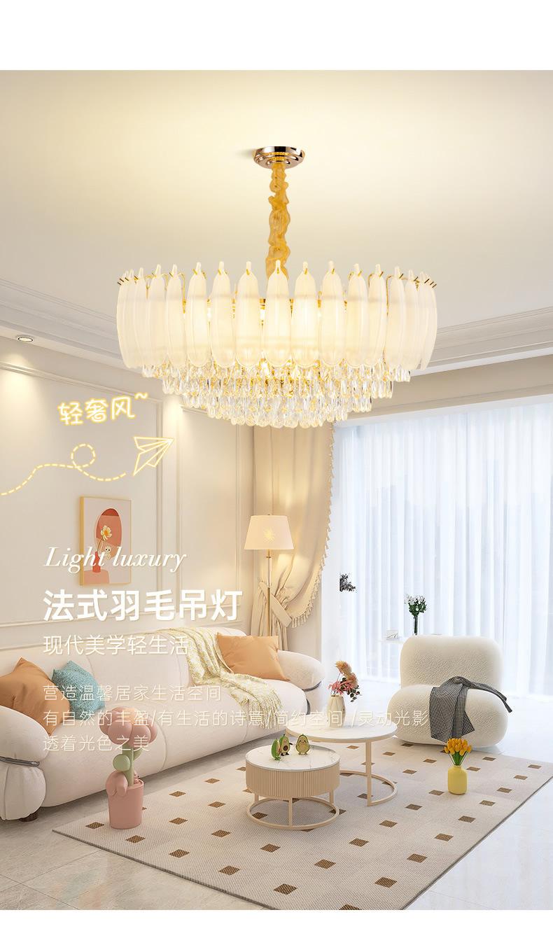 Lámpara de araña de cristal de lujo posmoderna para sala de estar, lámpara de dormitorio de plumas sencillas americanas, lámparas de comedor retro de alta gama