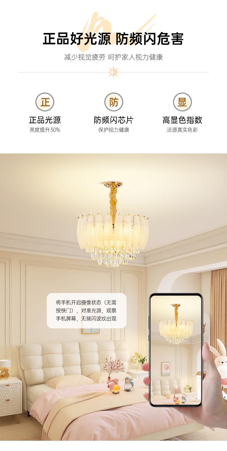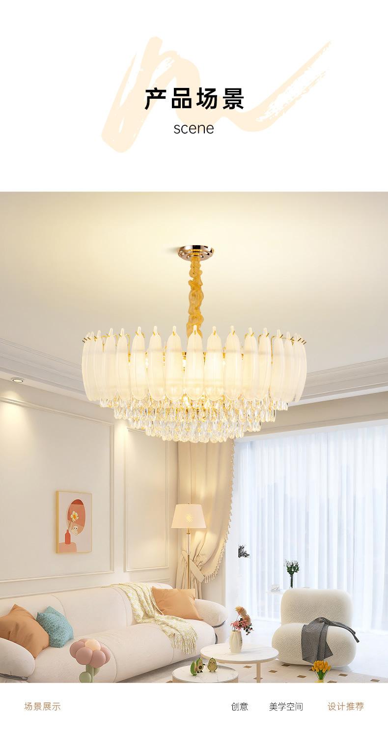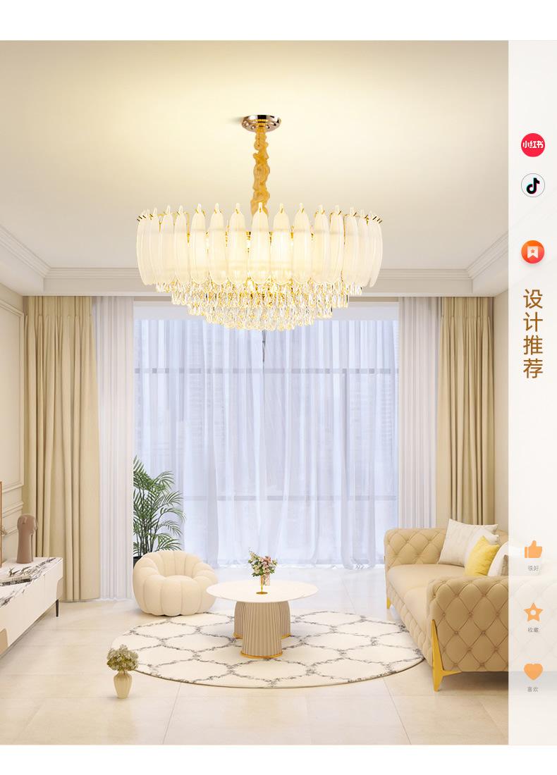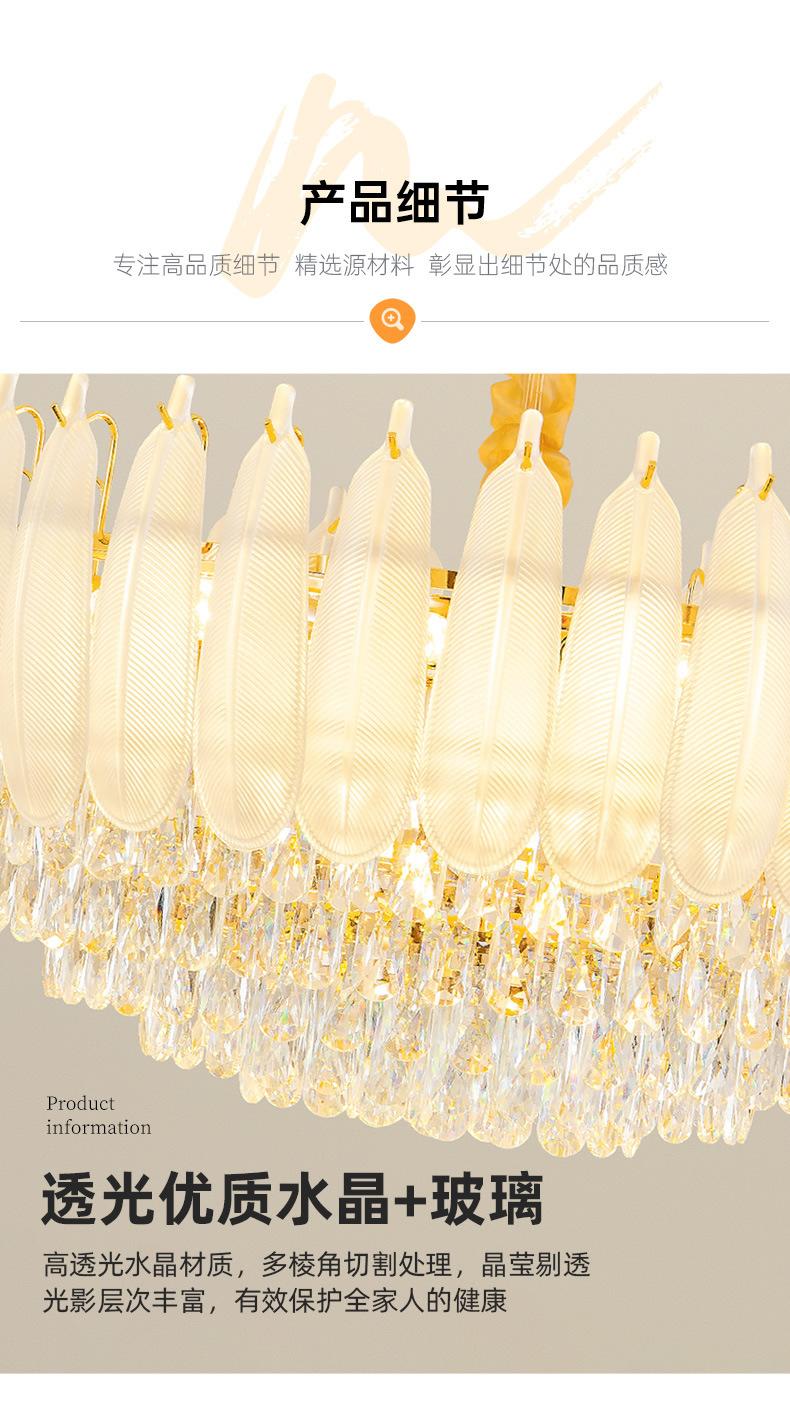 Lámpara de araña de cristal de lujo posmoderna para sala de estar, lámpara de dormitorio de plumas sencillas americanas, lámparas de comedor retro de alta gama