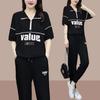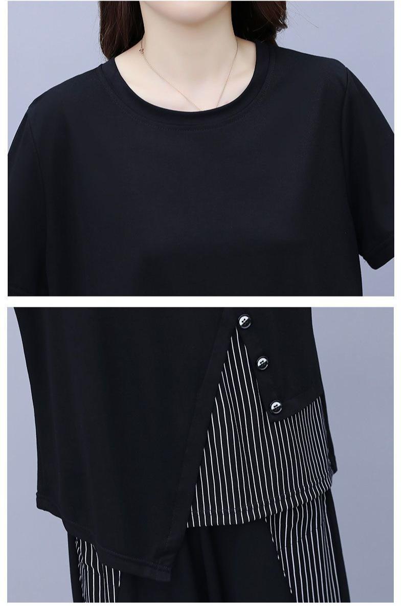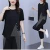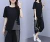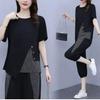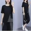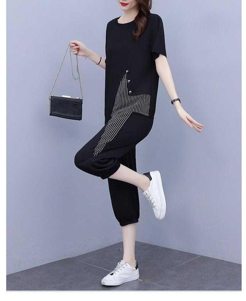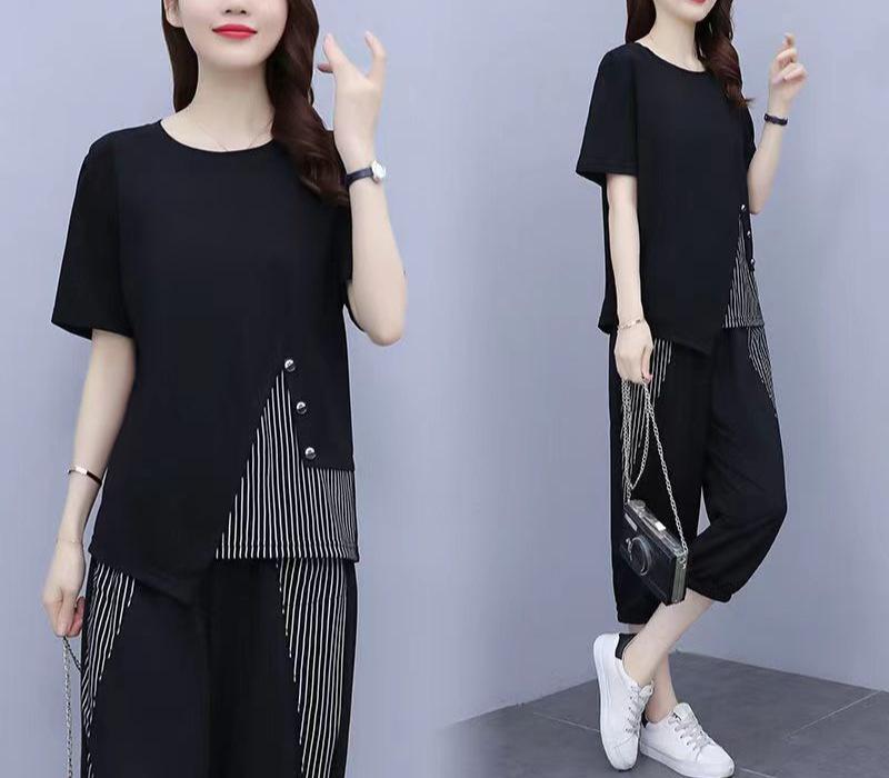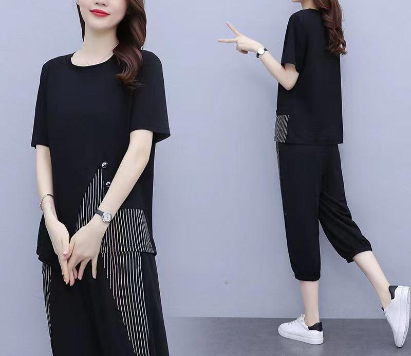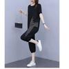 Traje deportivo informal para mujer 2025, holgado, de talla grande, adelgazante, de verano, nuevo, de manga corta, pantalones capri para mujer, traje de dos piezas