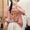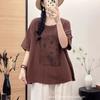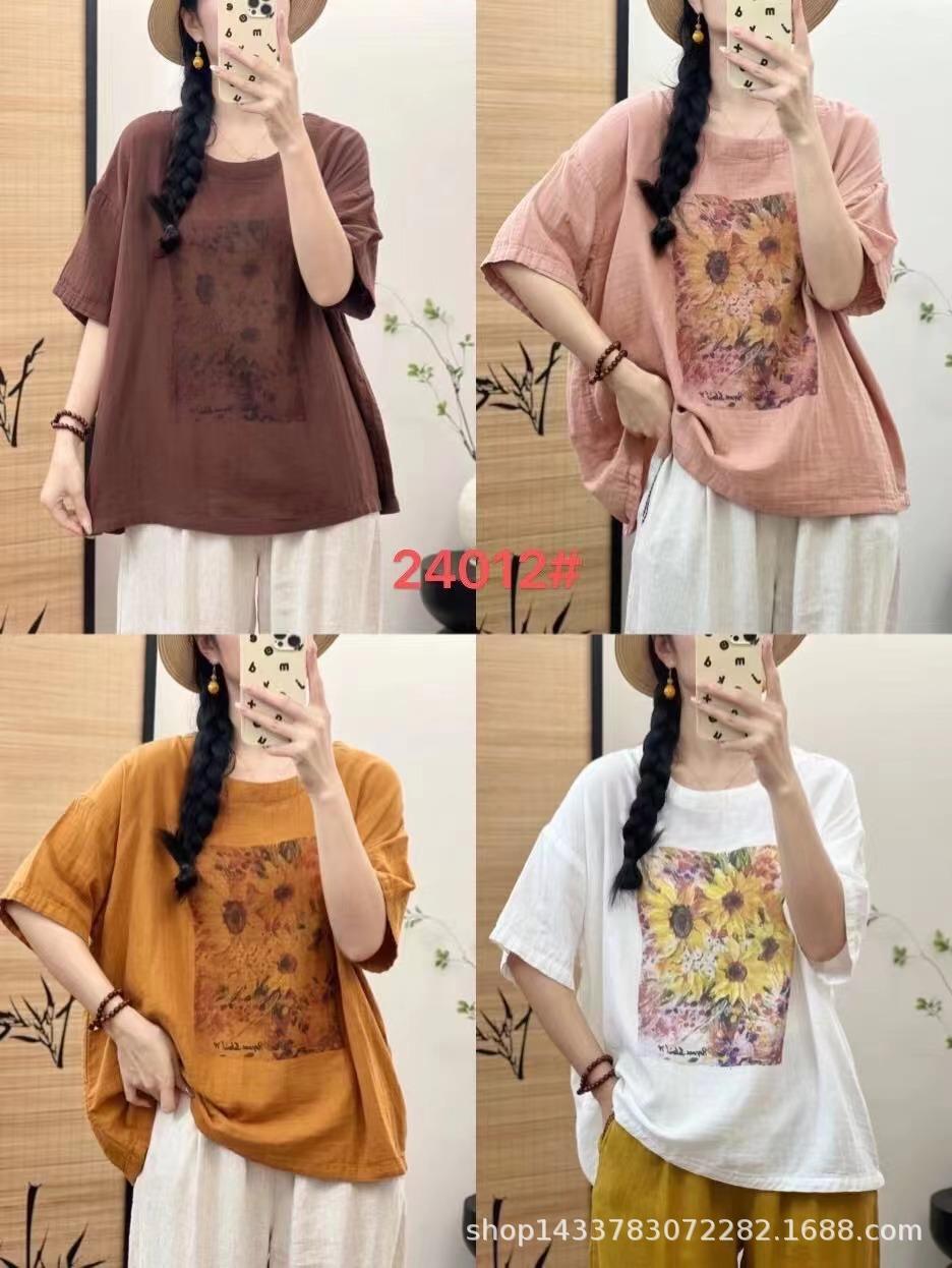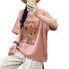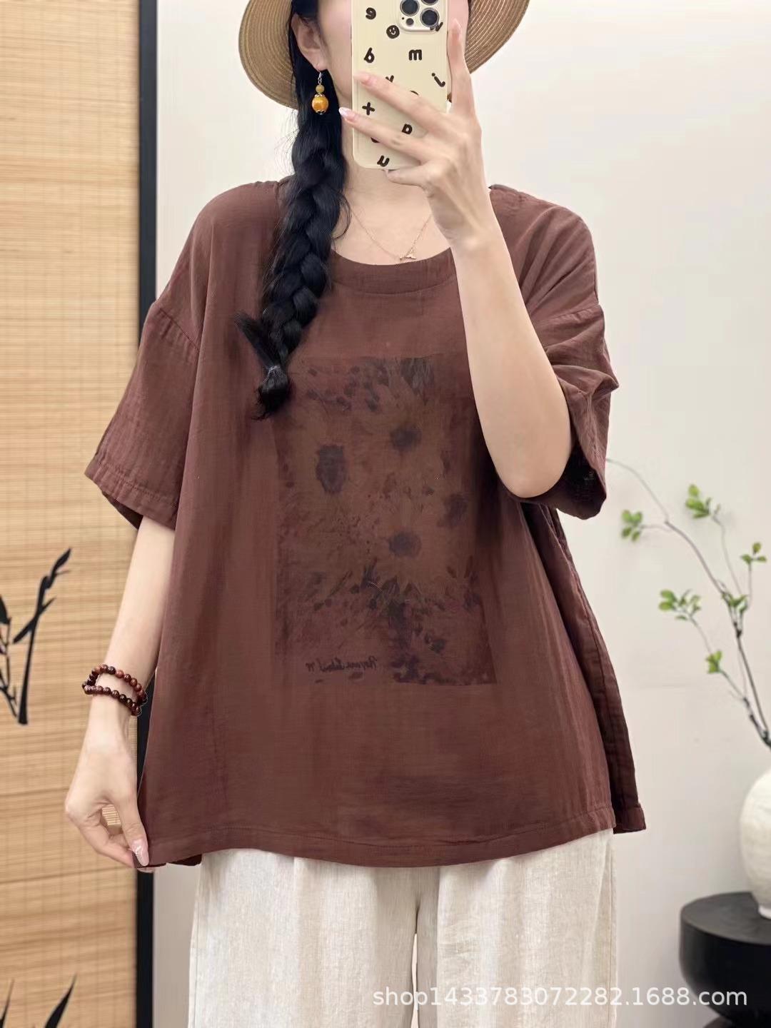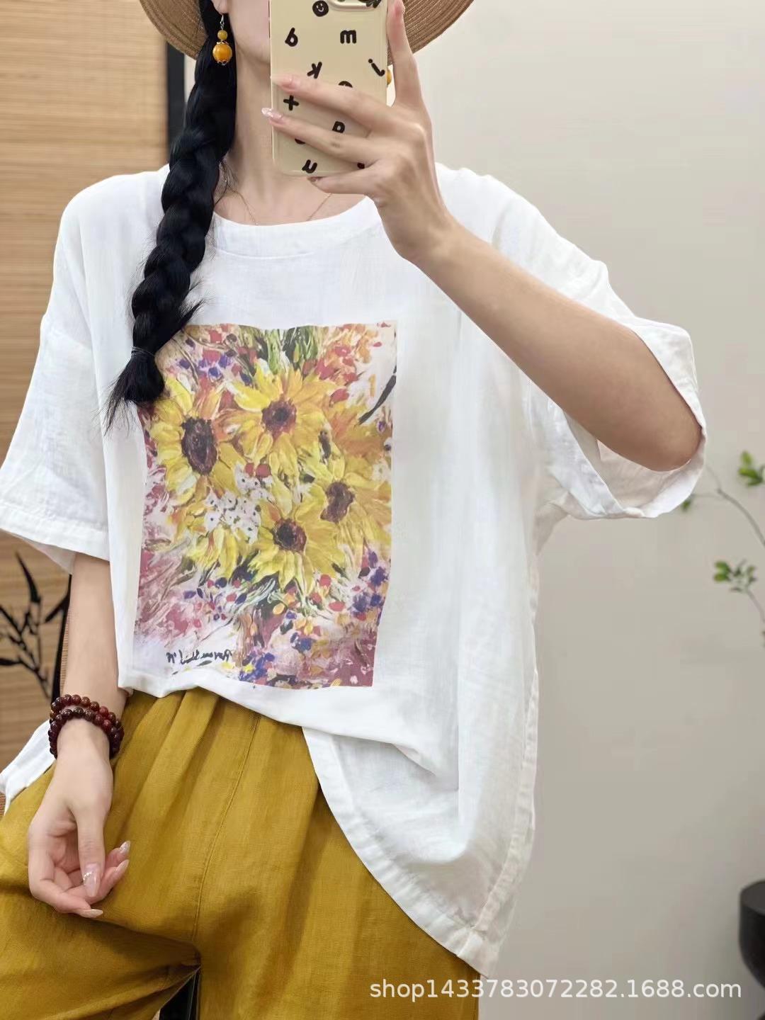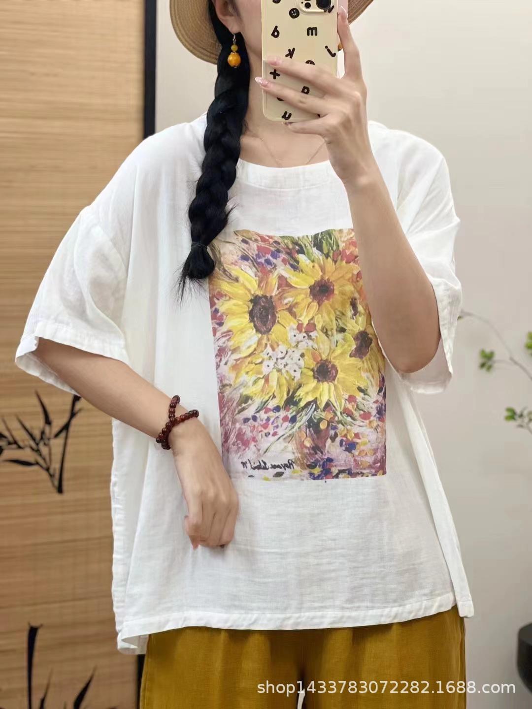 Camiseta de manga corta con cuello redondo y estampado retro para mujer, holgada, informal, transpirable y adelgazante, novedad de verano de 2024