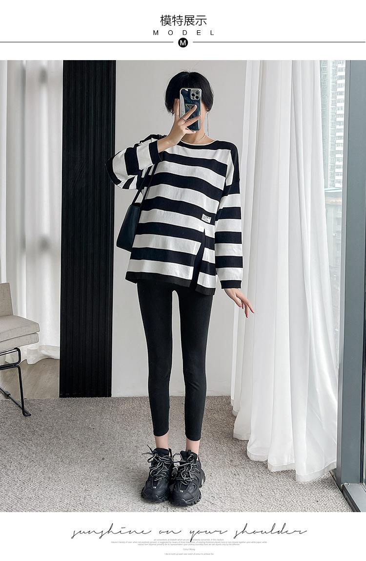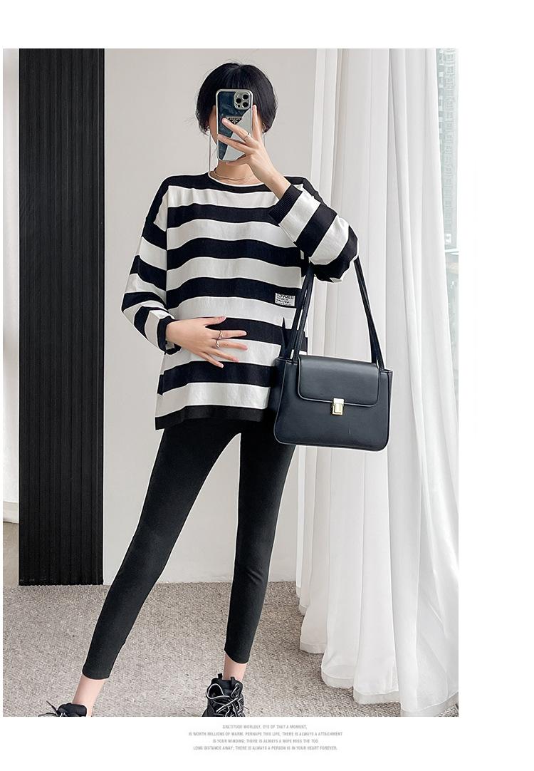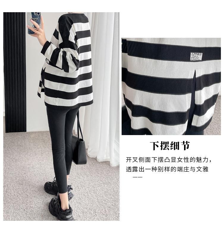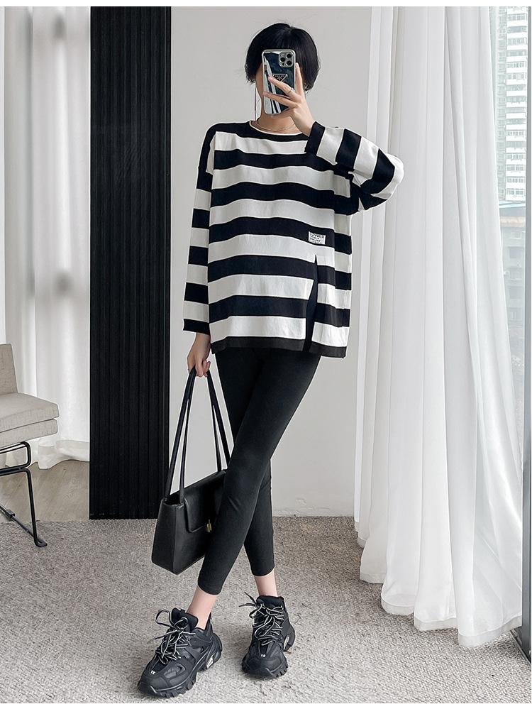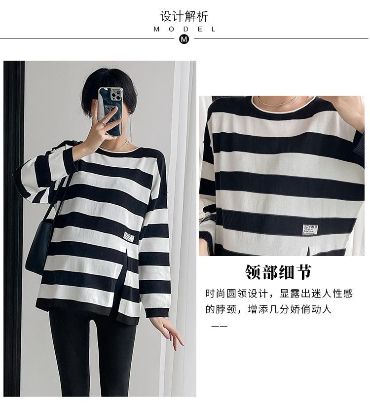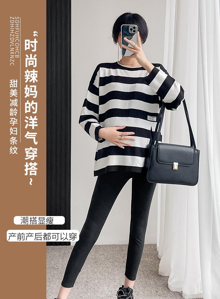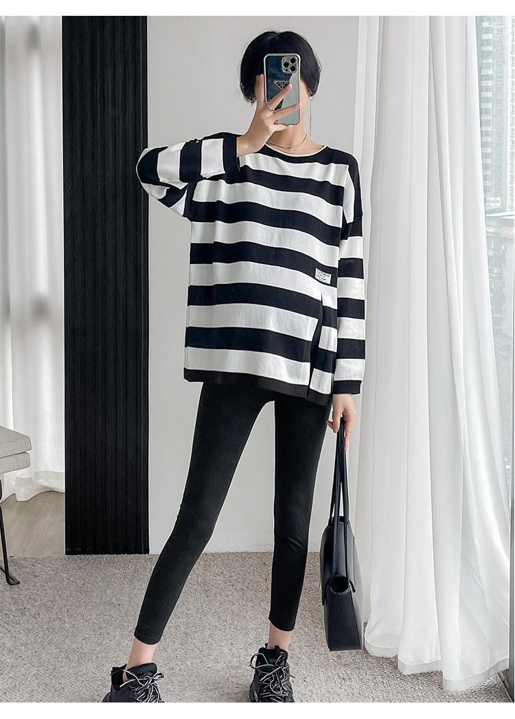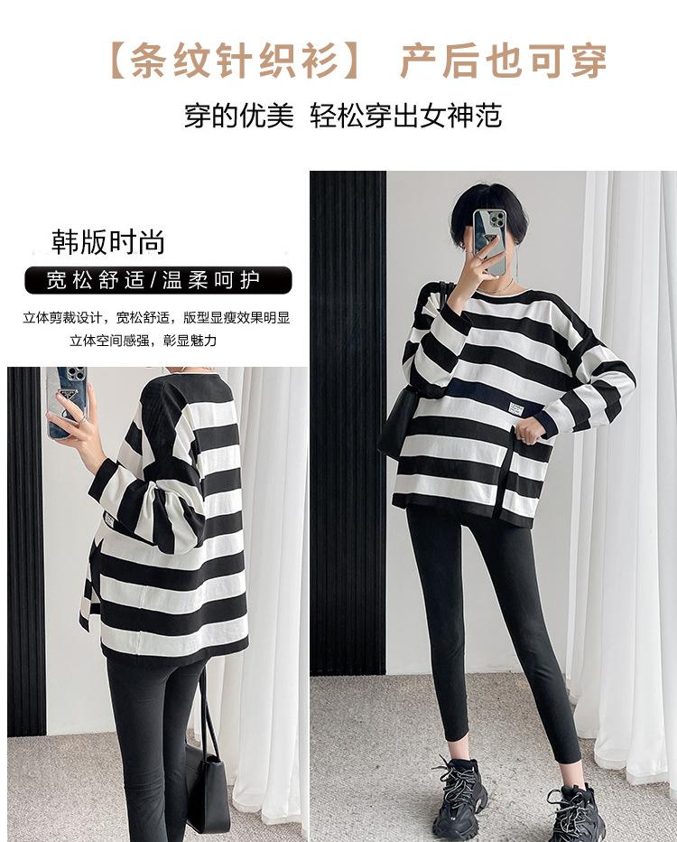 En stock Traje de Otoño para Mujeres Embarazadas 2024 Nuevo Suéter Holgado de Manga Larga a Rayas con Abertura Top de Punto de Otoño para Mujeres Embarazadas