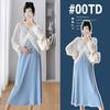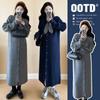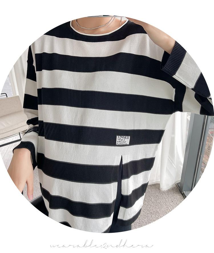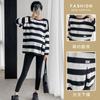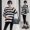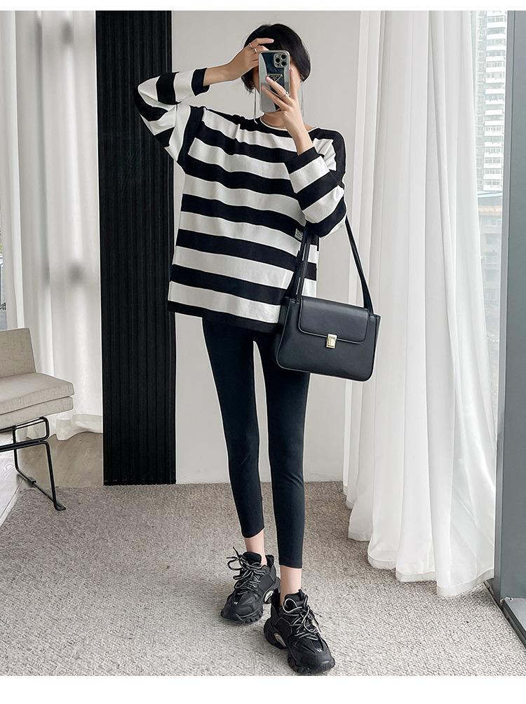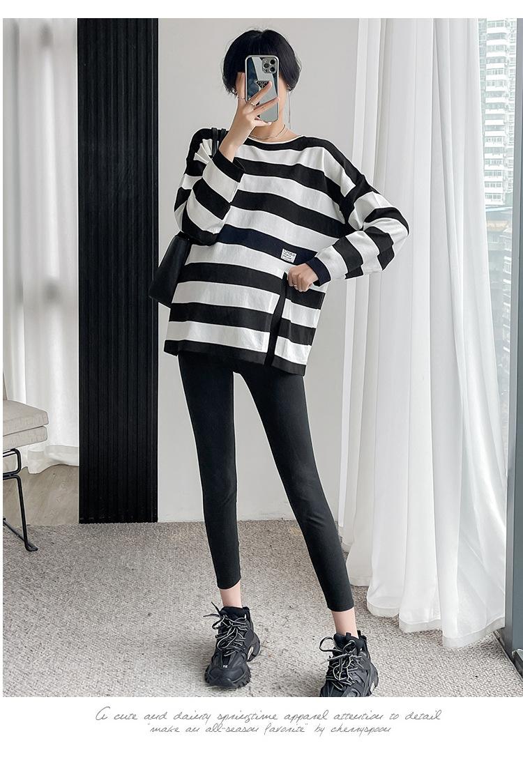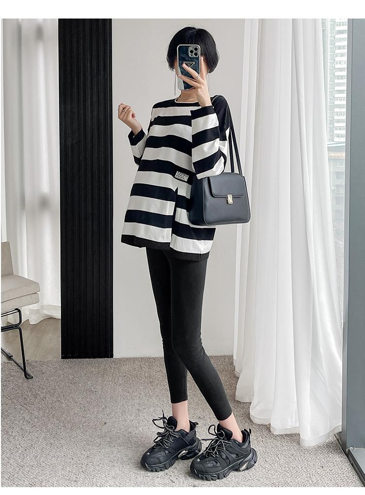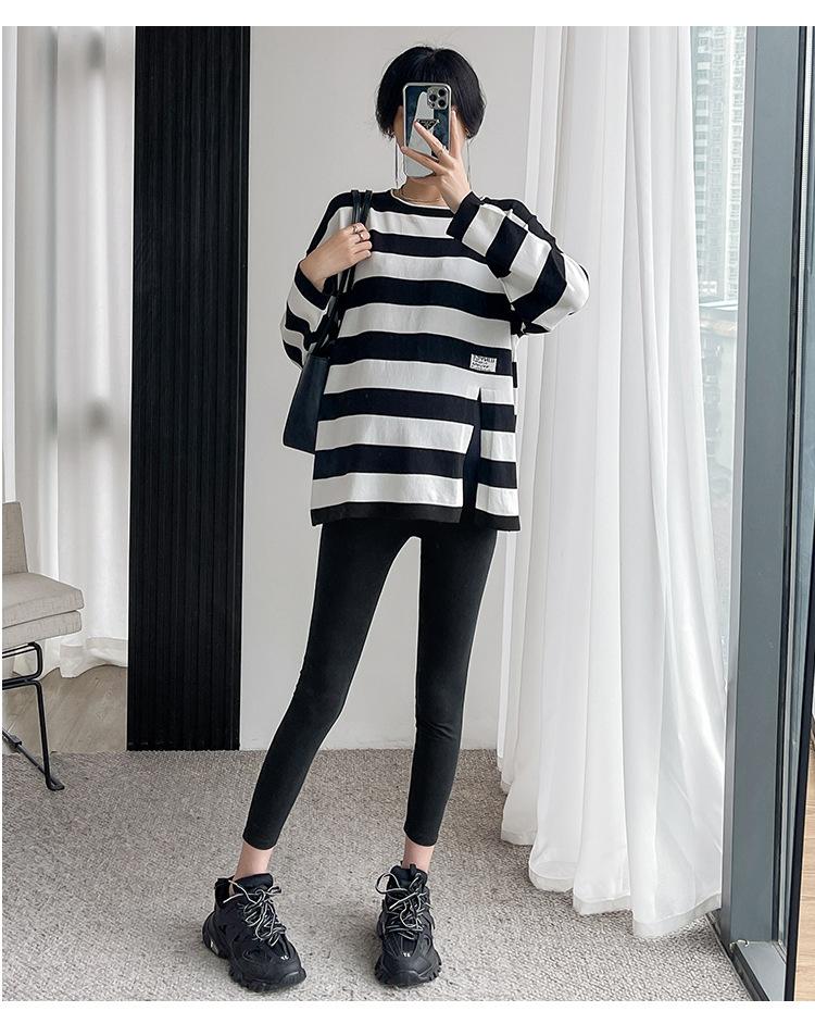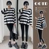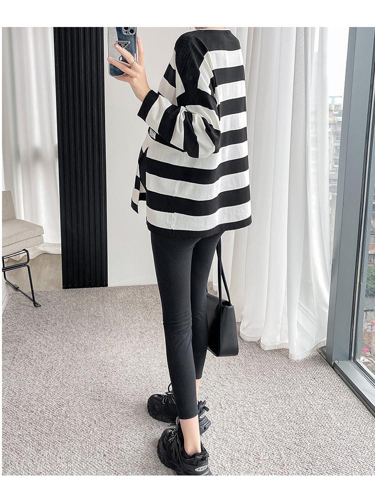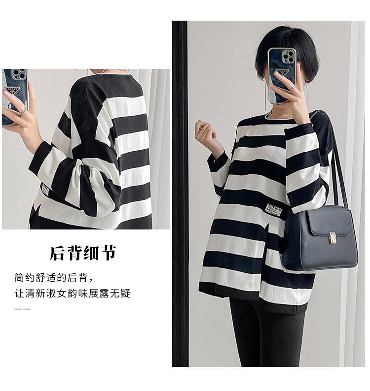 En stock Traje de Otoño para Mujeres Embarazadas 2024 Nuevo Suéter Holgado de Manga Larga a Rayas con Abertura Top de Punto de Otoño para Mujeres Embarazadas