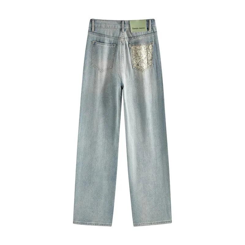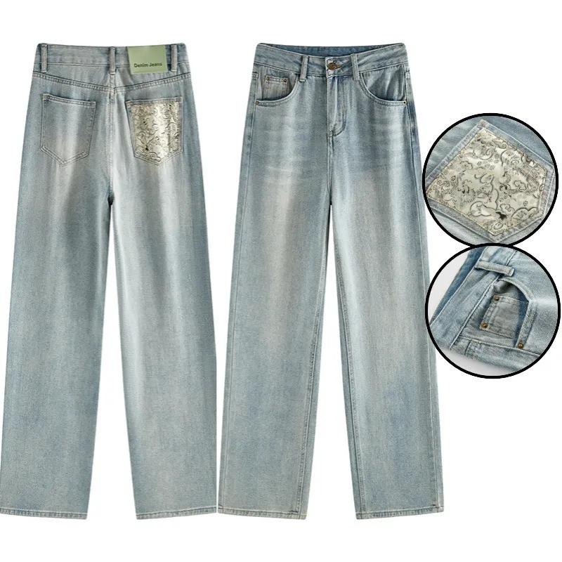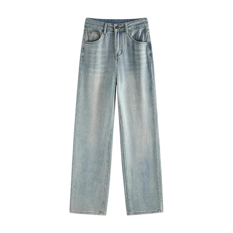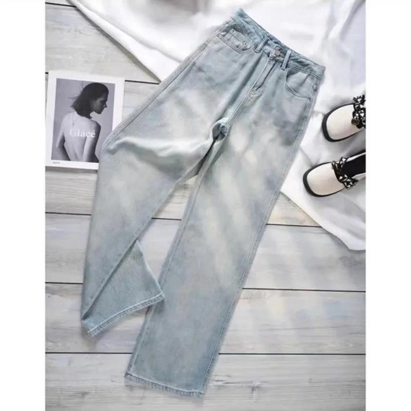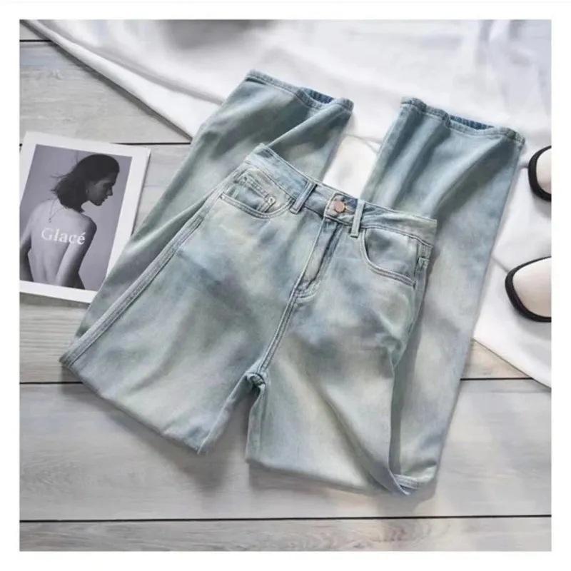 Pantalones rectos finos de color claro para mujer, novedad de verano 2025, pantalones de pierna ancha estrechos y lavados que combinan con todo.