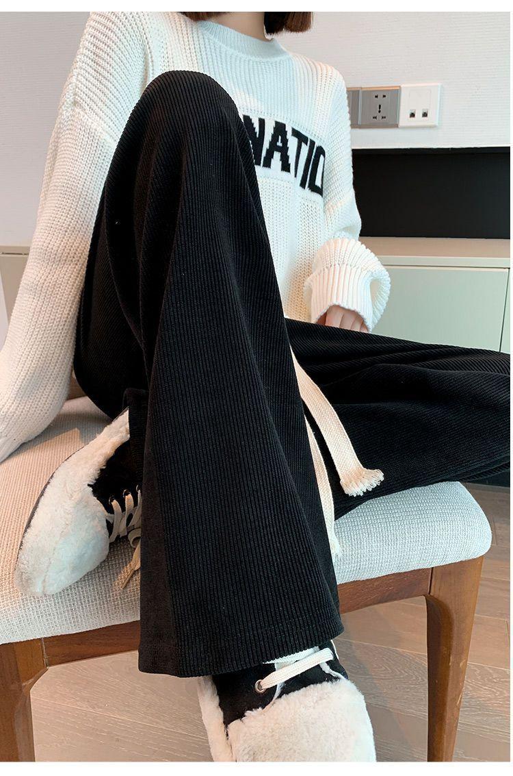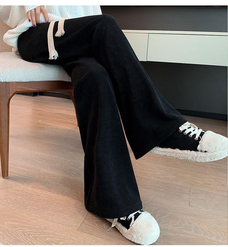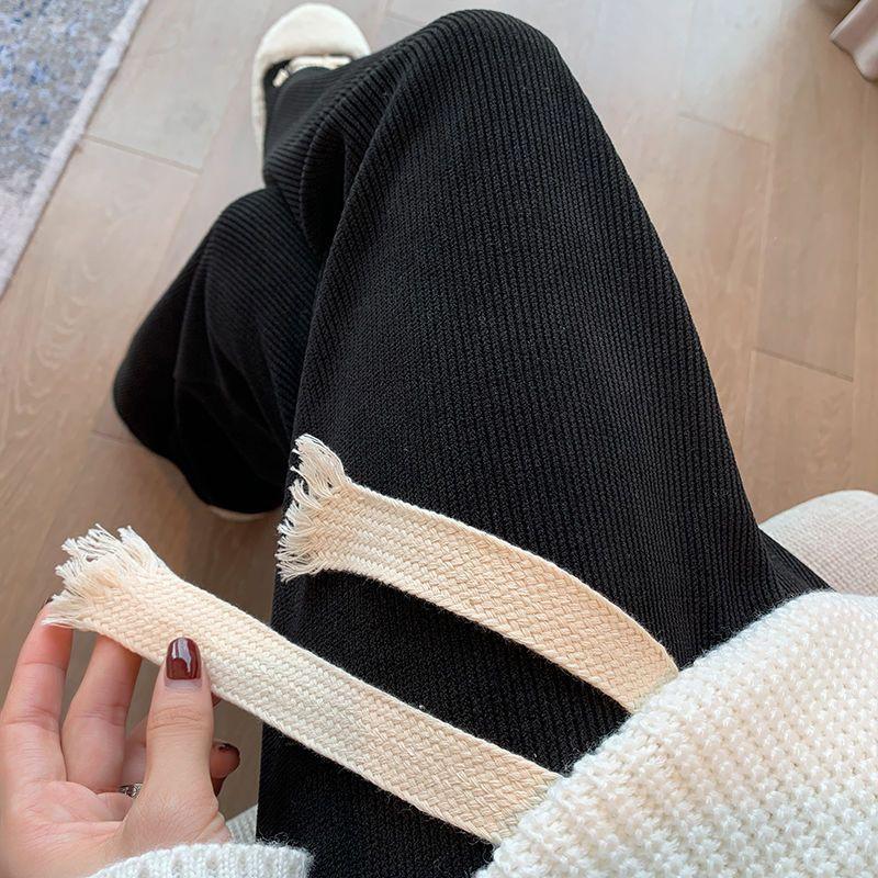 Pantalones anchos con cordón para mujer, otoño e invierno, sueltos, de cintura alta, rectos, pantalones casuales nuevos de 2024