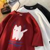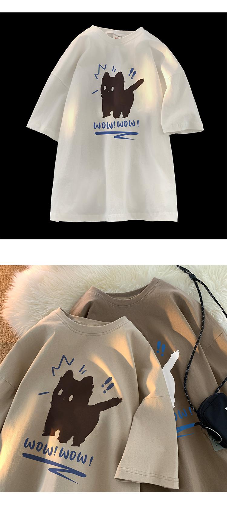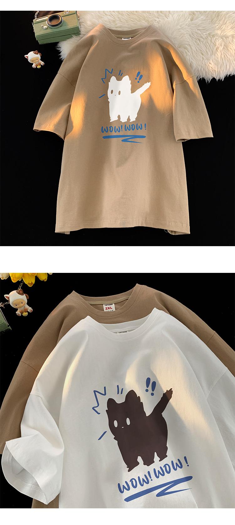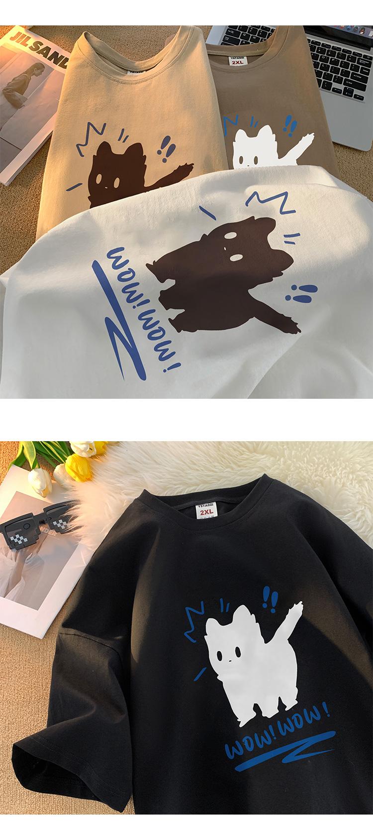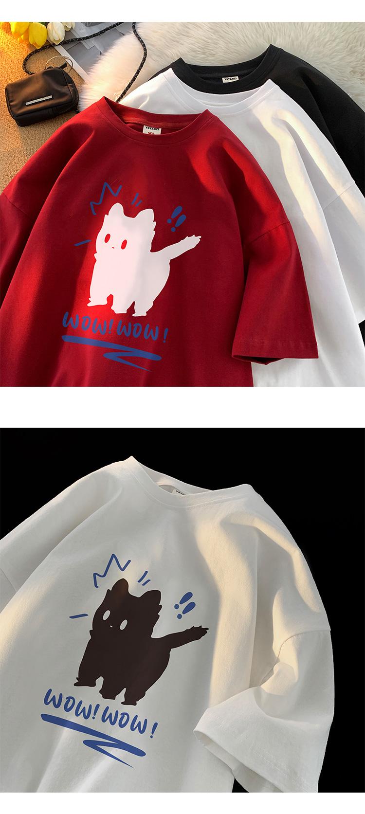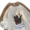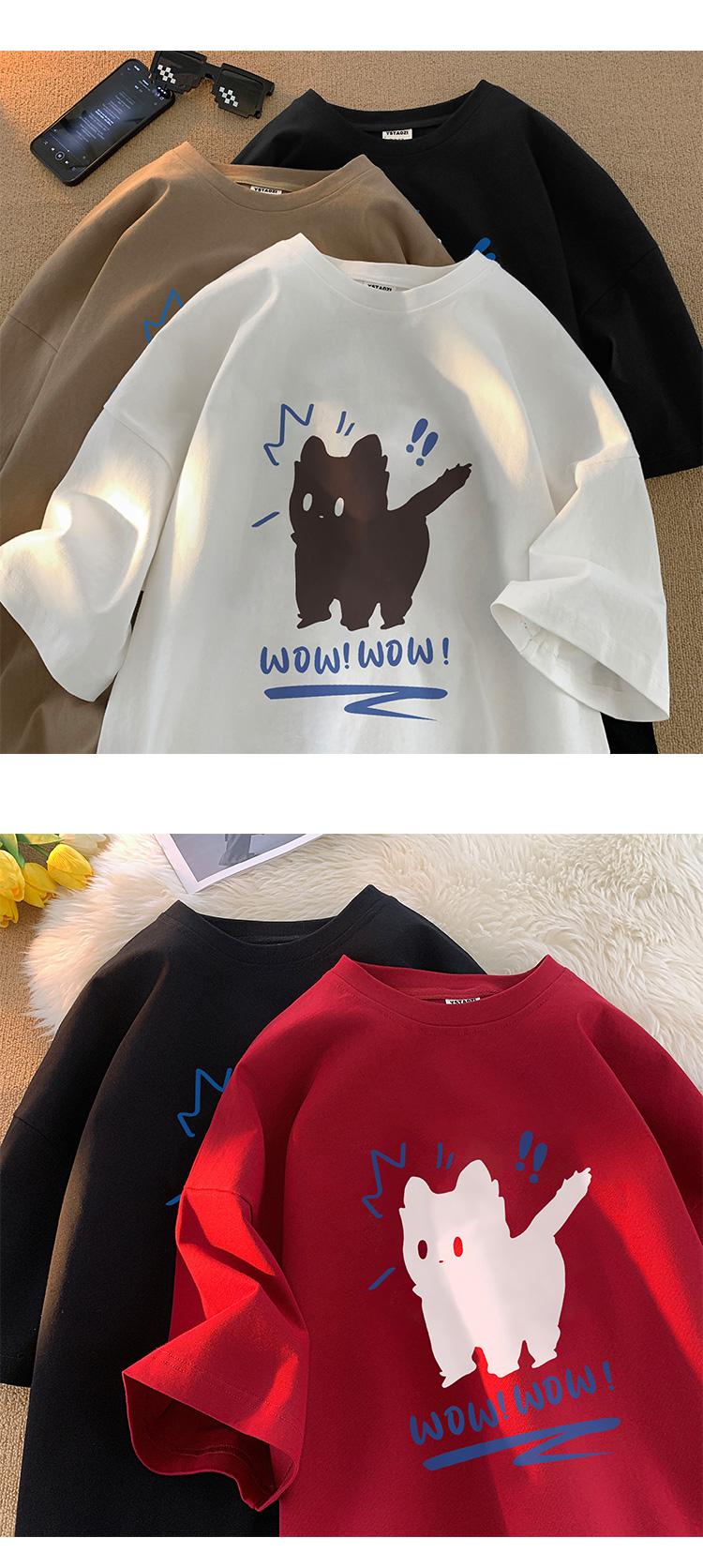 Camiseta de manga corta con cuello redondo y estampado de gato para hombre, holgada, de verano, de media manga, estilo americano, de marca moderna, combinable con todo, para adolescentes.