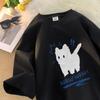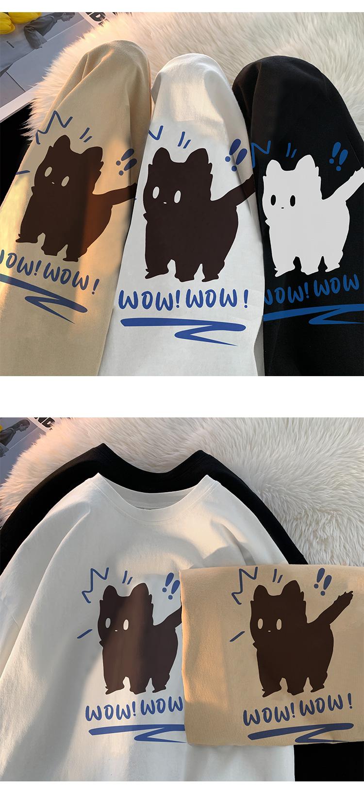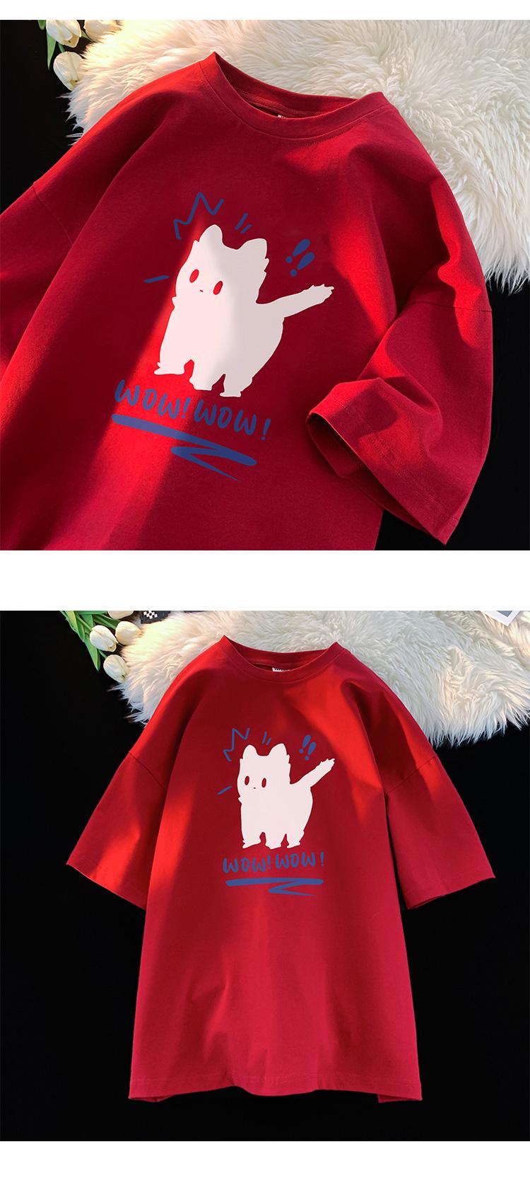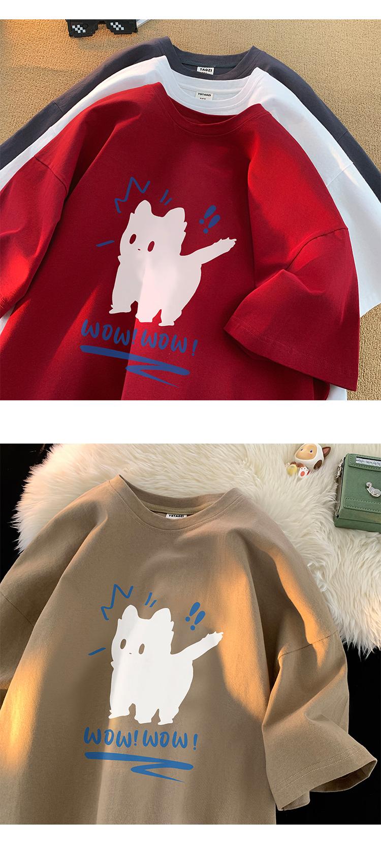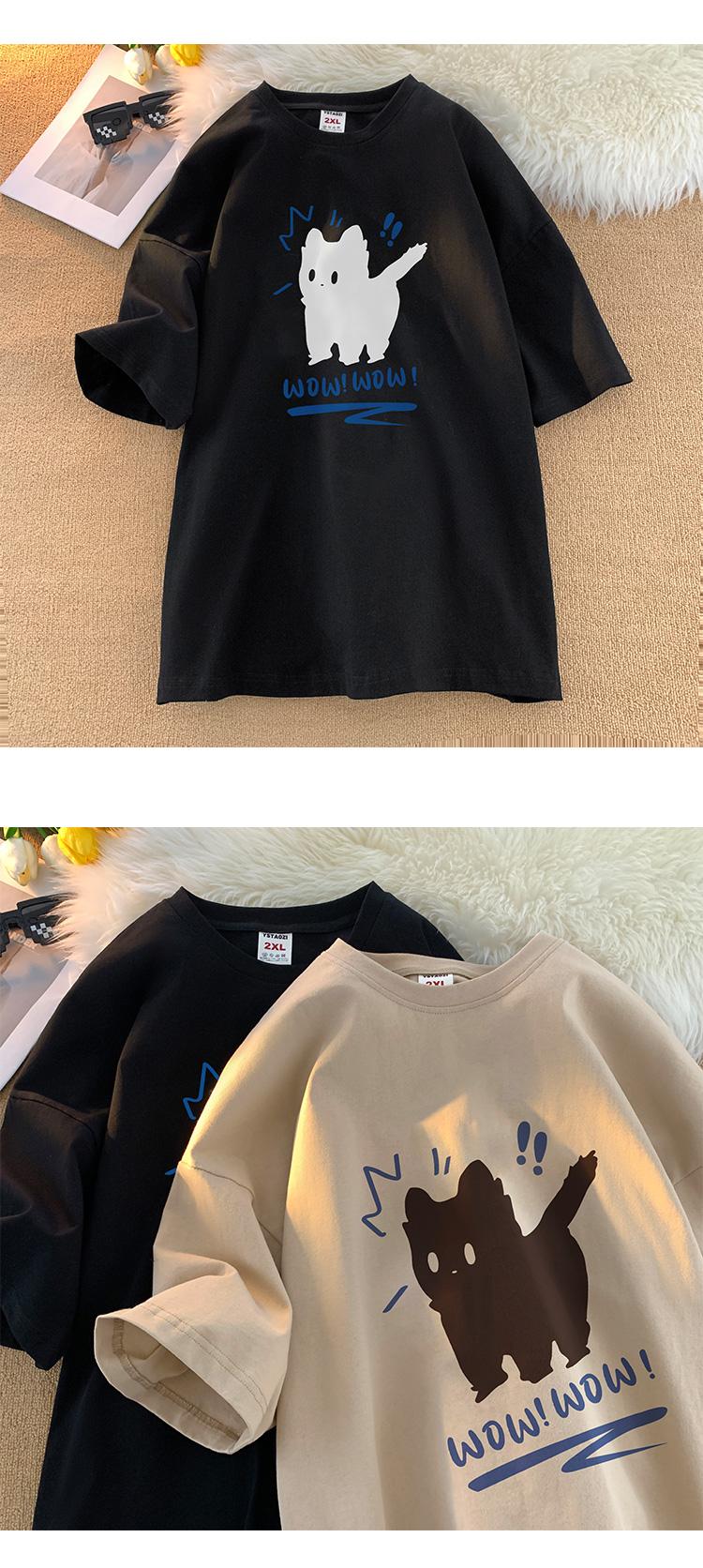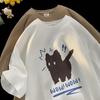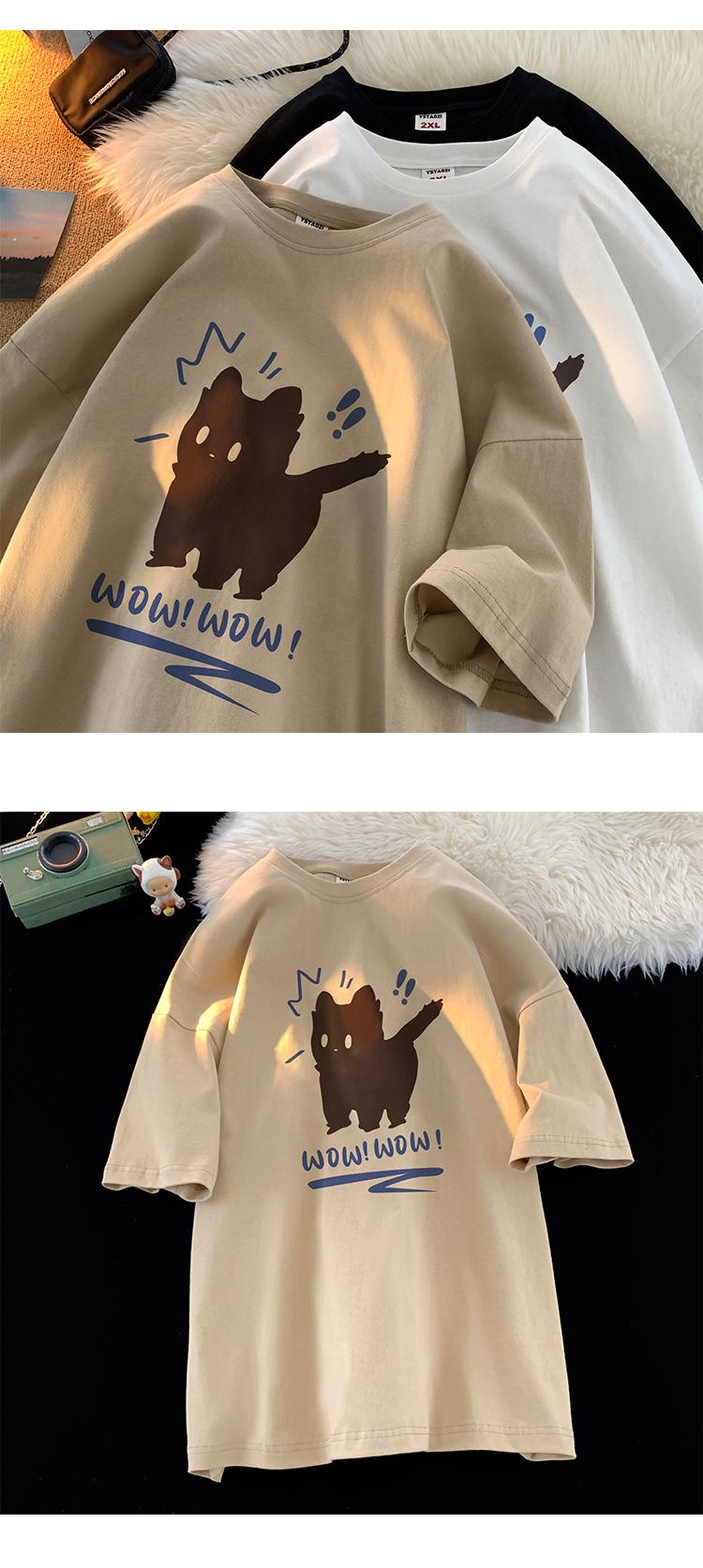 Camiseta de manga corta con cuello redondo y estampado de gato para hombre, holgada, de verano, de media manga, estilo americano, de marca moderna, combinable con todo, para adolescentes.