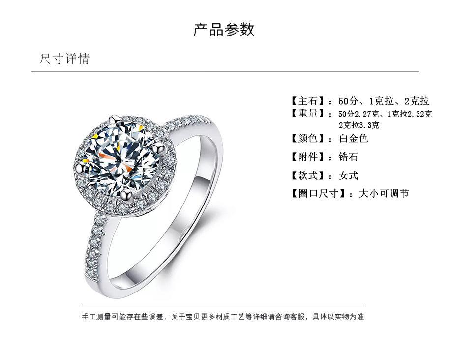 Anillo de moissanita redondo con envío directo para mujer, anillo de plata de seis garras estilo K, transmisión en vivo, oferta al por mayor