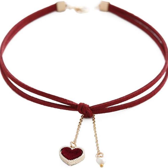 Set de Collar Cadena para el Cuello Terciopelo Cadena para Clavícula Collar Gótico Clásico Negro Amor Rojo Amor Colgante