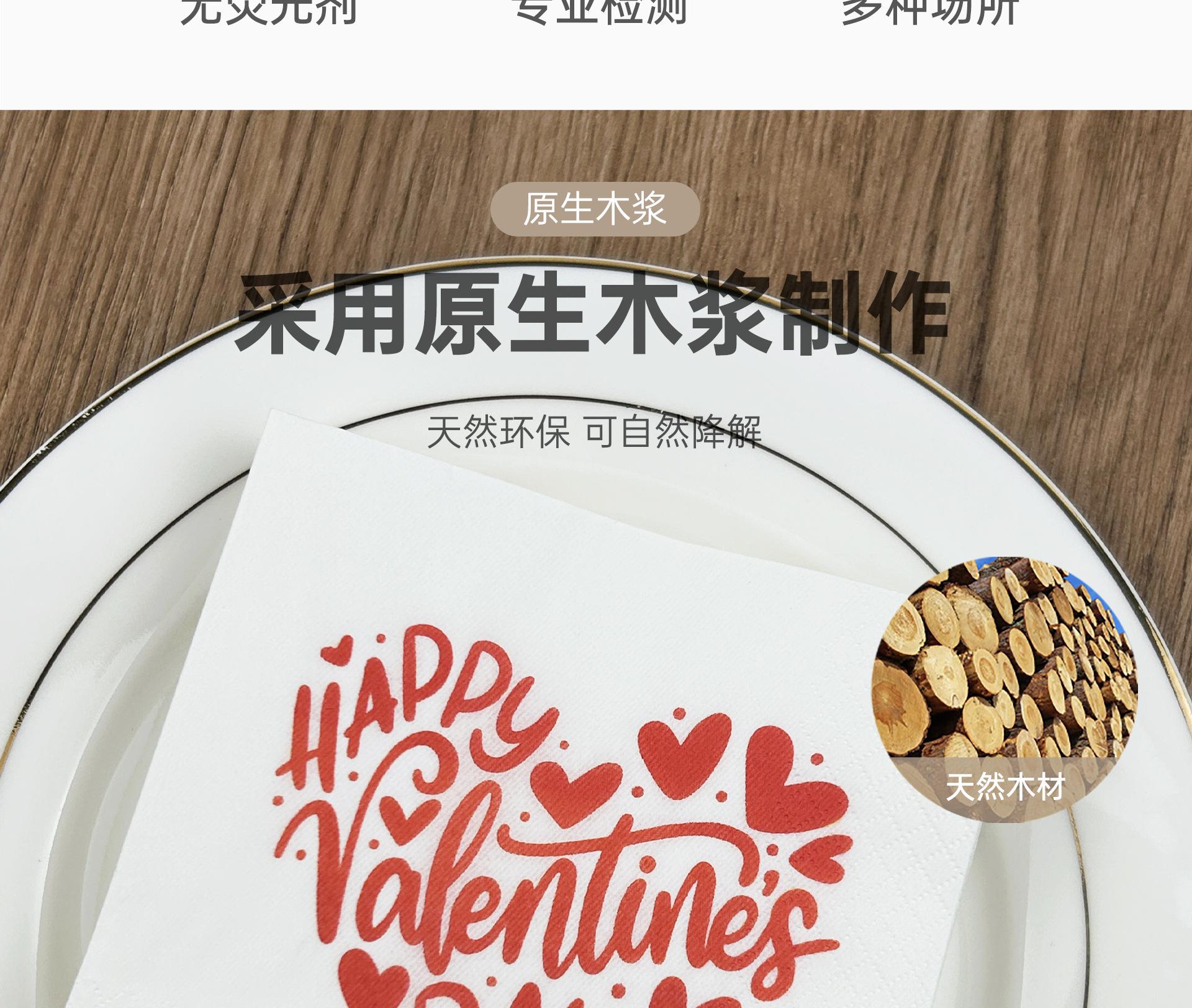 Pañuelo de Papel Impreso con Amor de San Valentín, Servilleta de Papel para Fiesta, Pañuelo para la Atmósfera de la Fiesta, Boda, Restaurante, Papel Personalizable