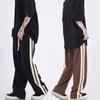 Pantalones rectos de verano para hombre, estilo Hong Kong, modernos, a rayas, informales, de estilo neutro, holgados, de pierna ancha.