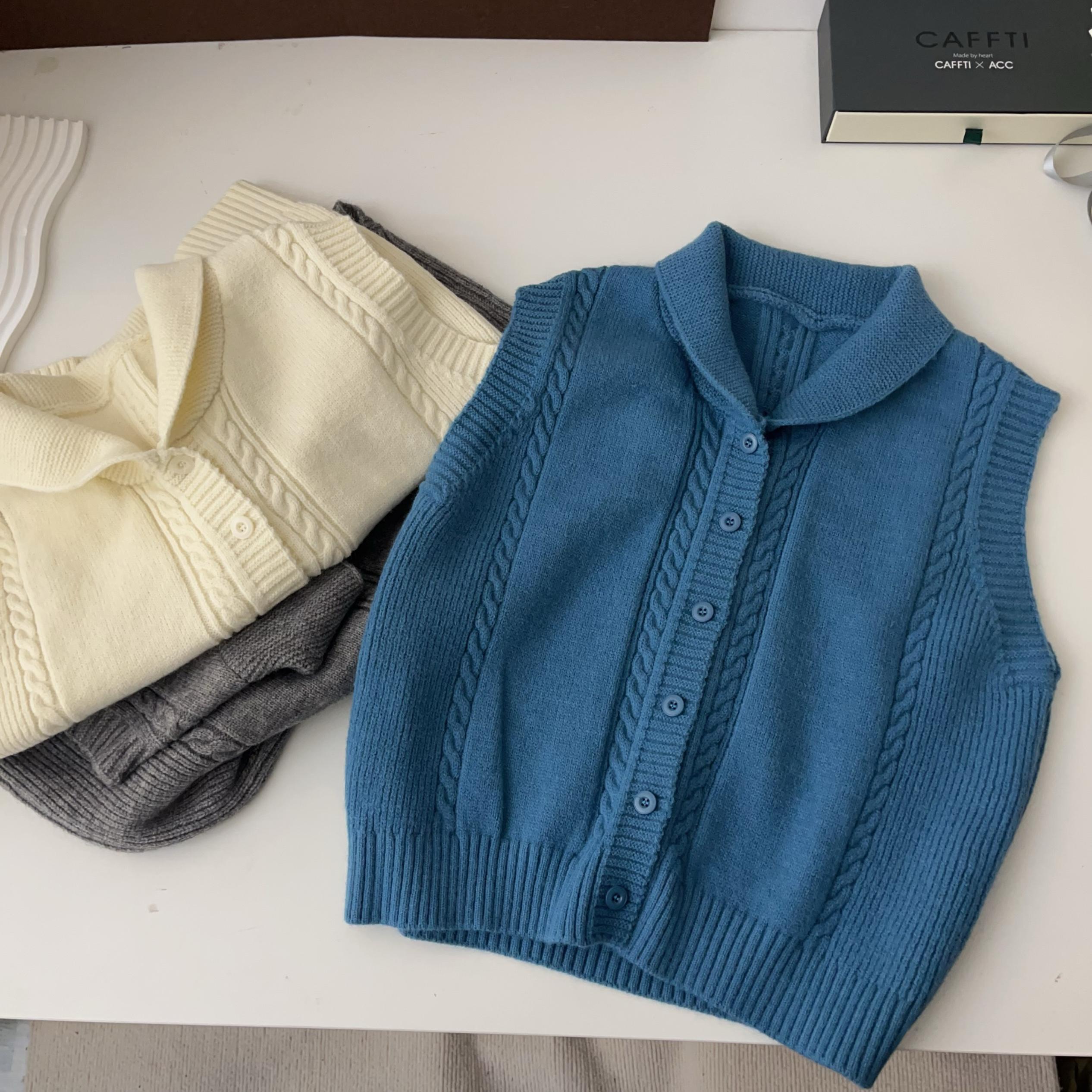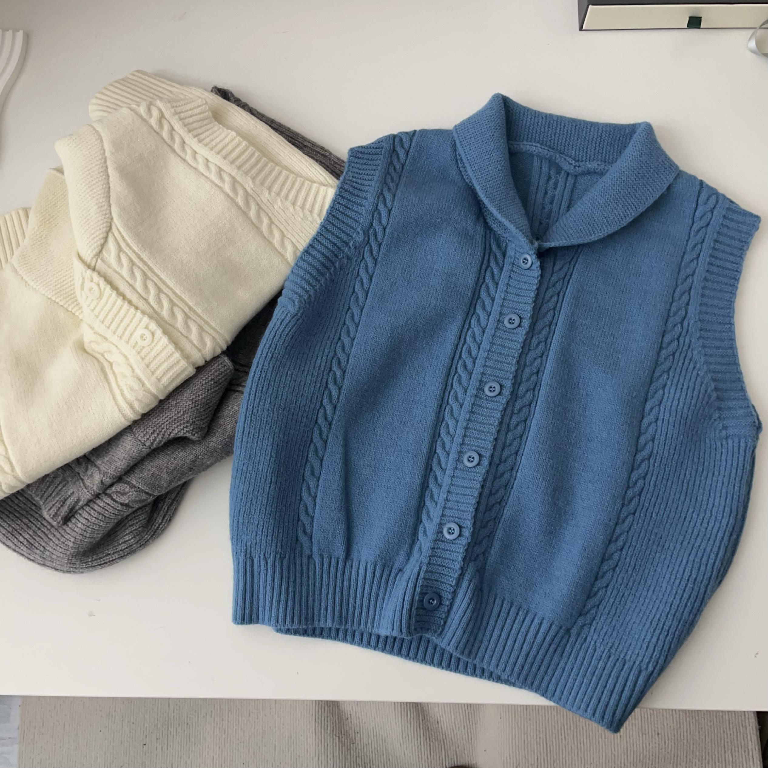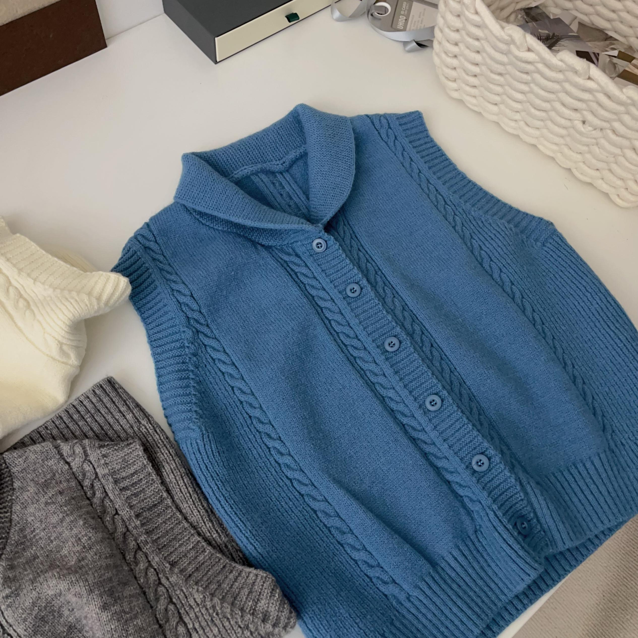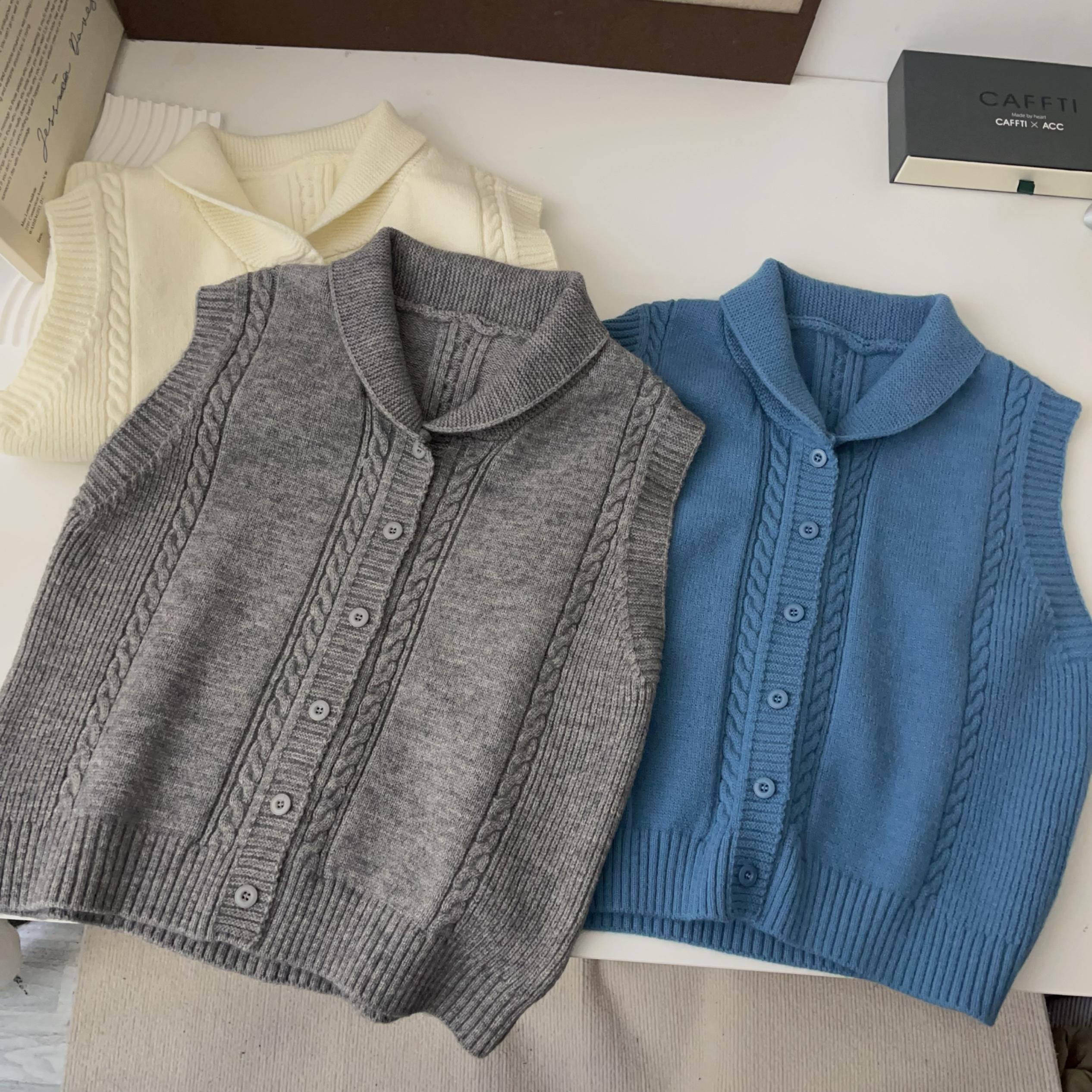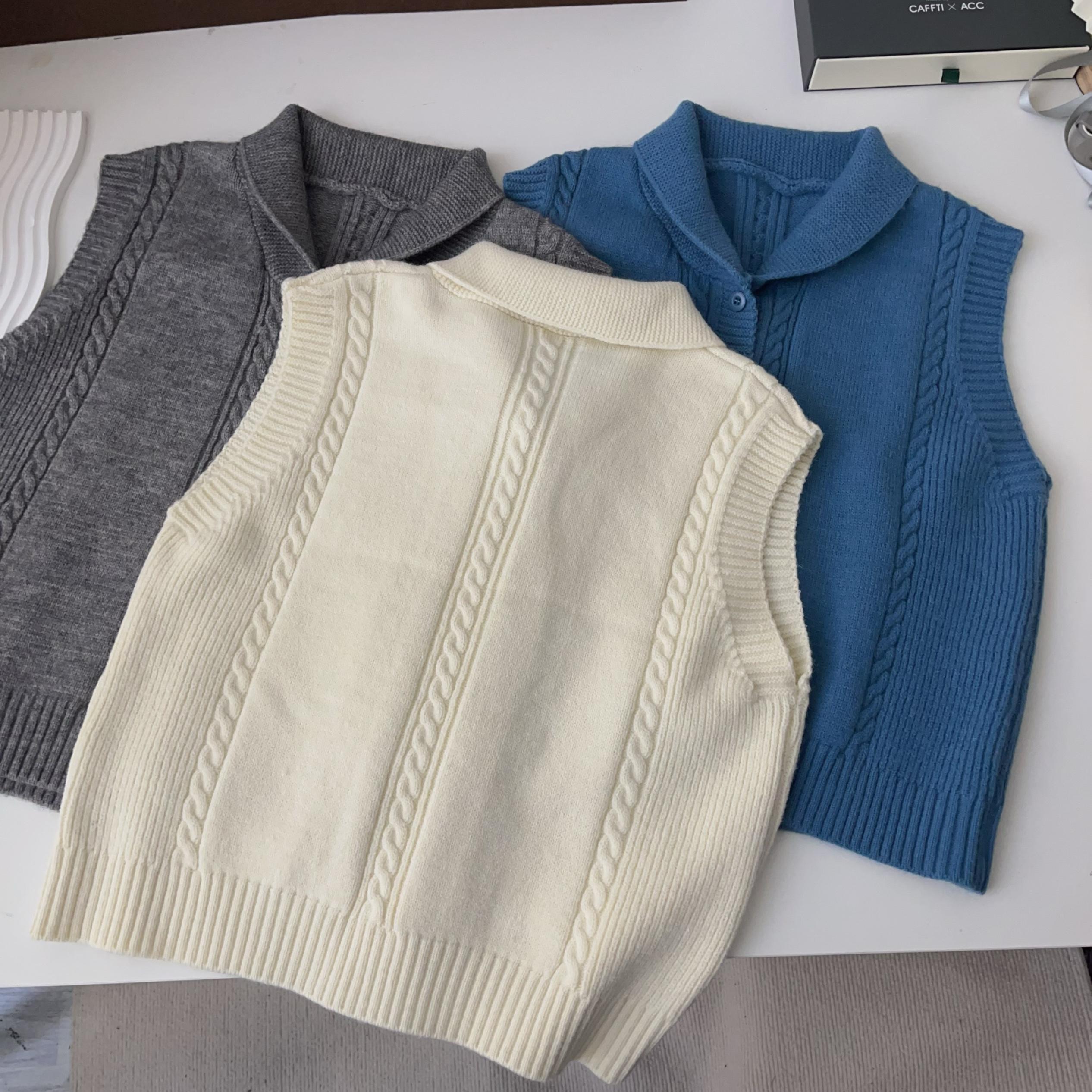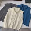 Chaleco de Punto con Cuello Aegis Cárdigan Otoño e Invierno Nuevo Coreano Holgado Adelgazante Combinable Chaleco Suéter sin Mangas