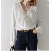 Camisa de manga larga 2025 para mujer, diseño de nicho, primavera y verano, nueva camisa informal plisada con solapa suelta y protección solar.
