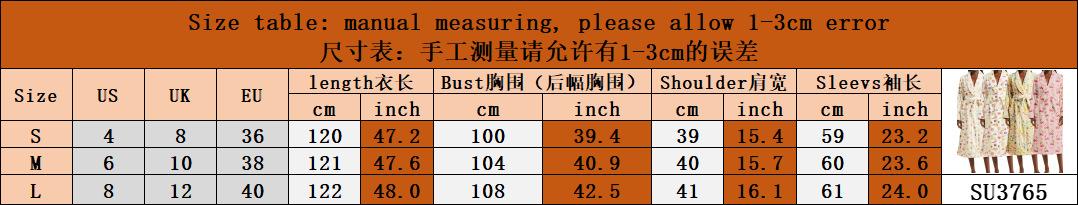 Pijama de Mujer Transfronterizo Nuevo Camisón Largo Bata con Cordones Estampado de Frutas Manga Larga Ropa para el Hogar SU3765