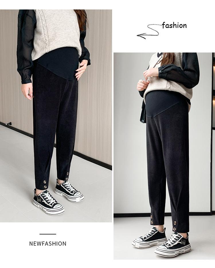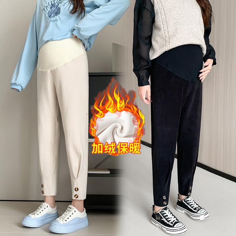 Pantalones de mujer embarazada 2024 otoño e invierno nuevos pantalones cortos de terciopelo de algodón europeo con forro polar pantalones adelgazantes para embarazadas pantalones de tubo