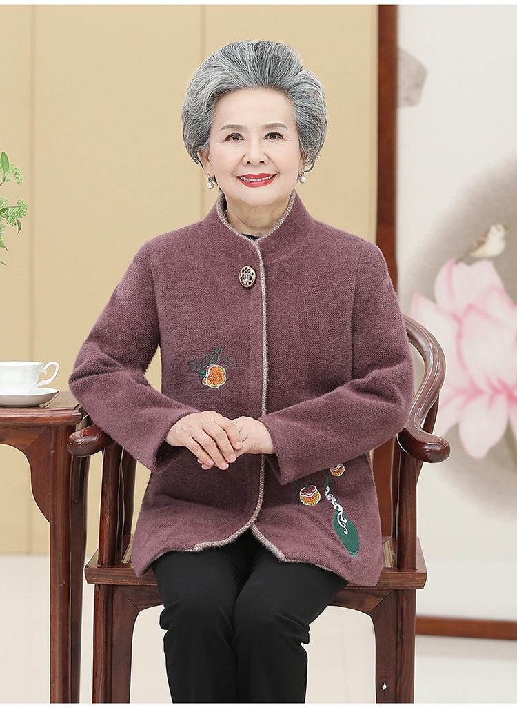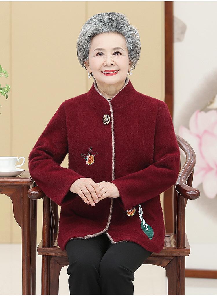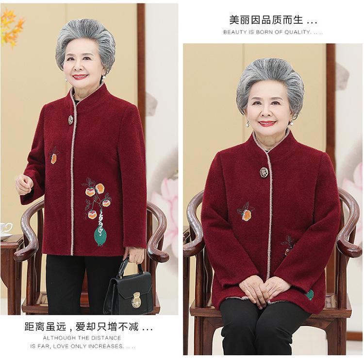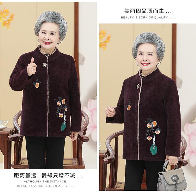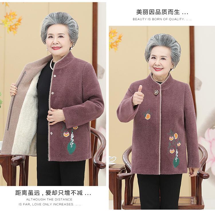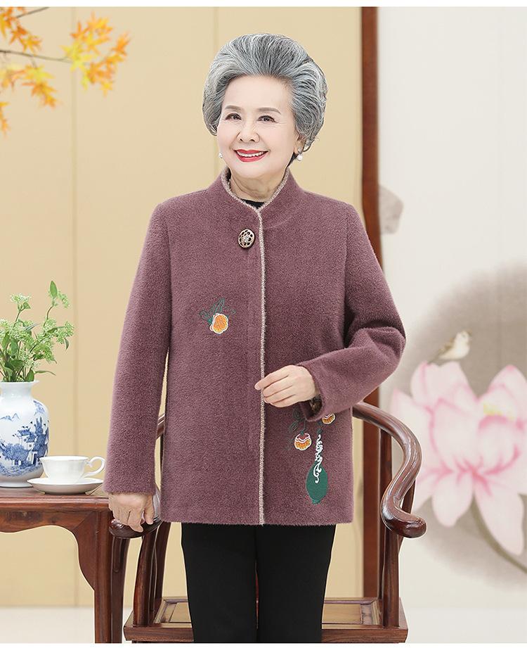 Ropa de otoño e invierno para mujeres de mediana edad y mayores, abrigo de lana estilo occidental, abrigo de abuela, abrigo acolchado de algodón de madre, abrigo de visón