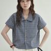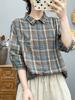 Camisa de manga corta con estampado de cuadros vintage para mujer, nueva camisa básica informal de moda de verano 2025, camisa base de moda