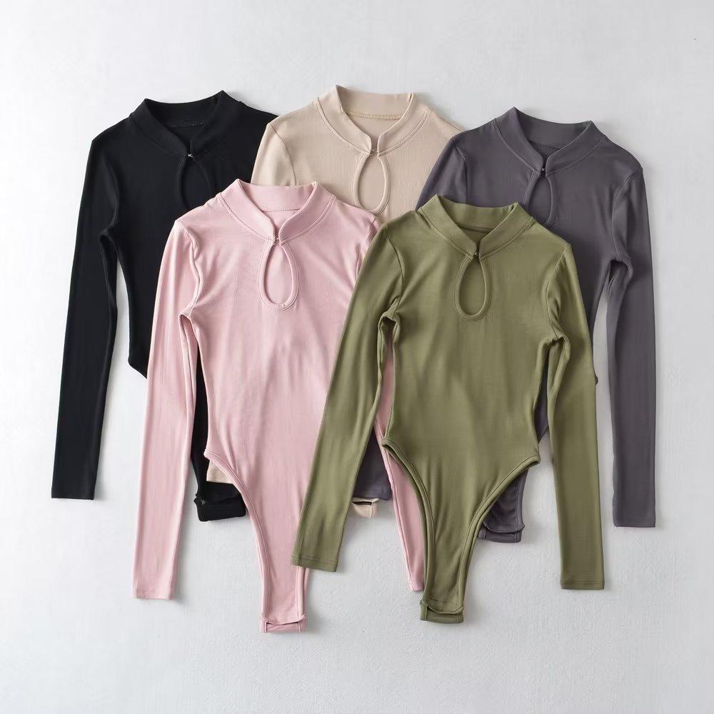 Mono ajustado sexy con cuello vertical y manga larga estilo Spice Girl para mujer, otoño 2022