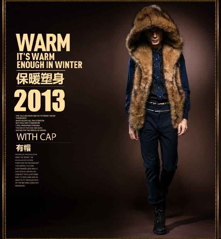 Bys2021 Ropa de Hombre Europea y Americana Otoño e Invierno Chaleco de Piel para Hombre con Capucha de Felpa Piel Sintética de Conejo Salvaje