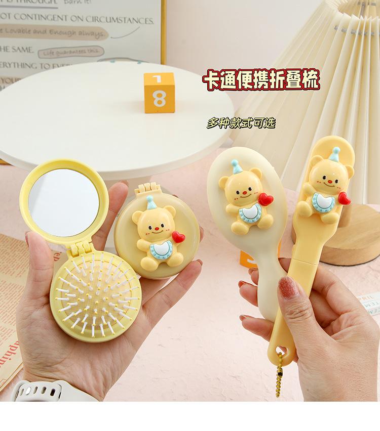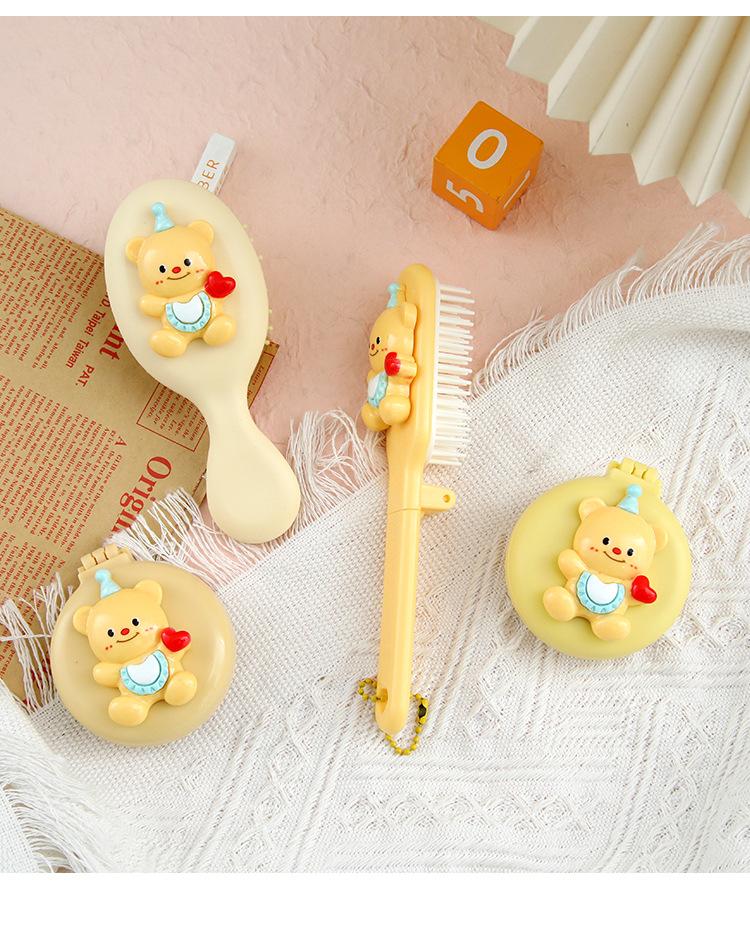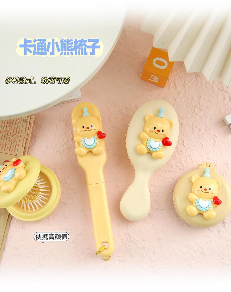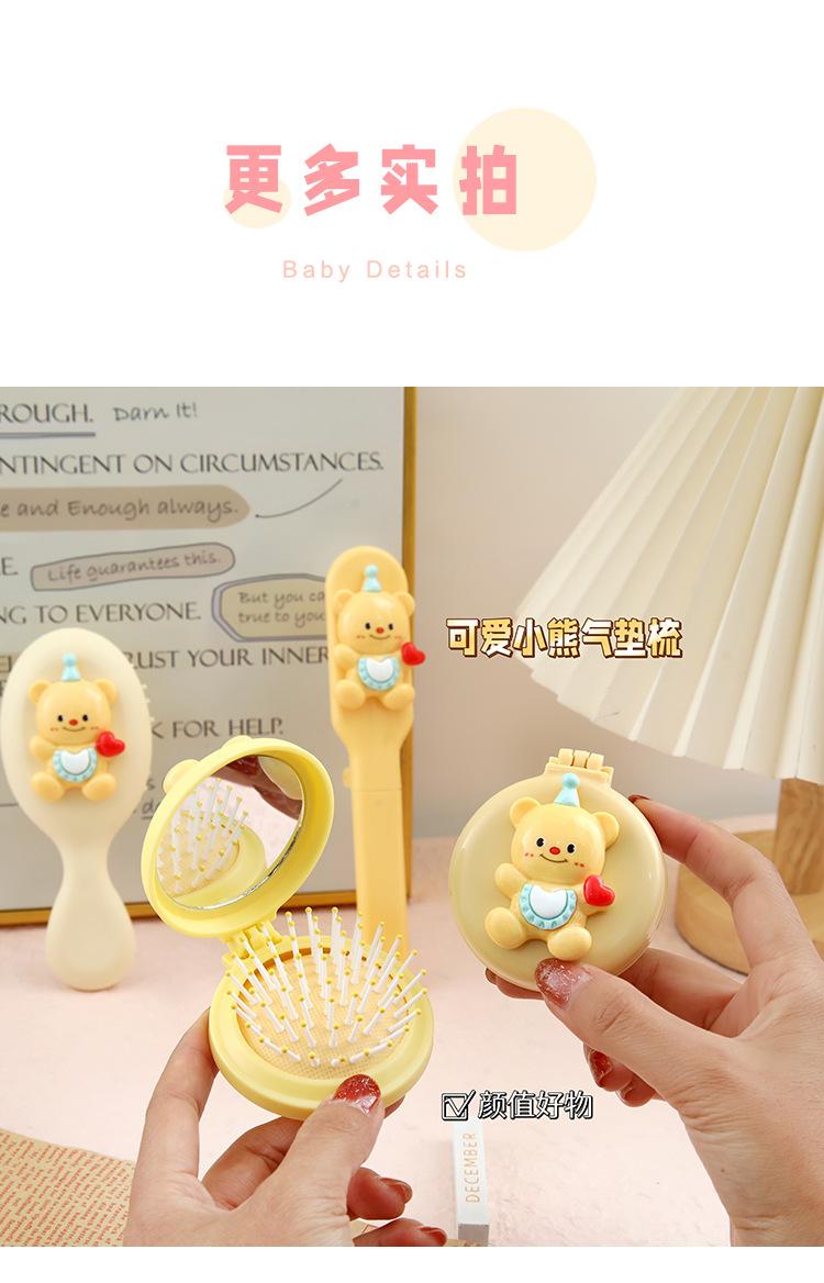 Peine con forma de oso de dibujos animados, suave y plegable, con cojín de aire, portátil, para estudiantes