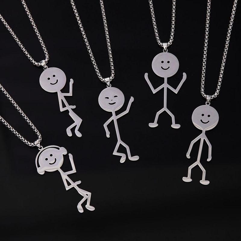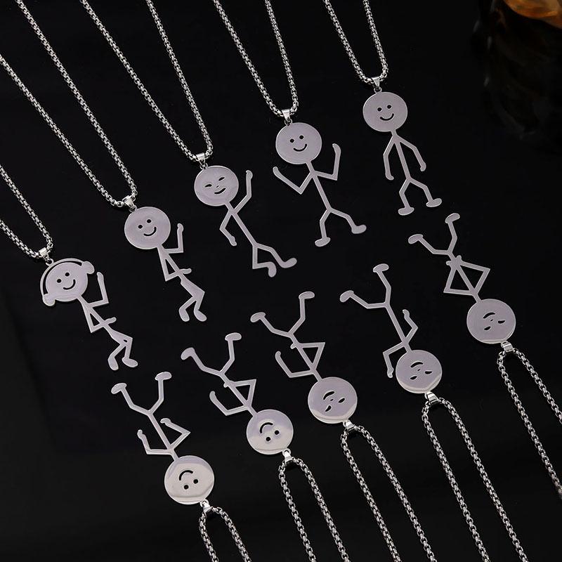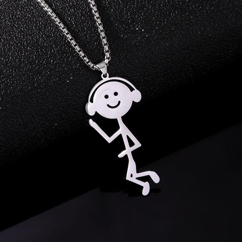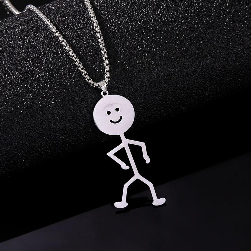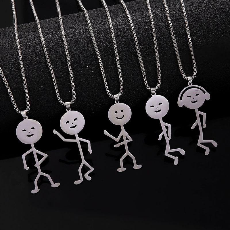 Nuevo collar de acero inoxidable personalizado transfronterizo, colgante de persona pequeña de dibujos animados de corte liso simple, joyería de comercio exterior al por mayor