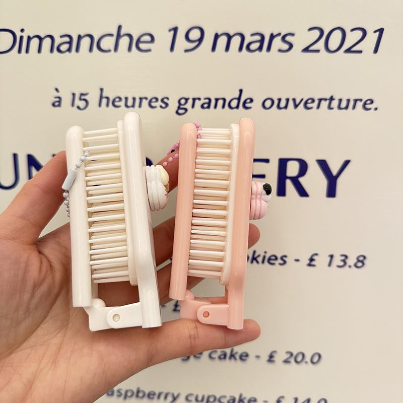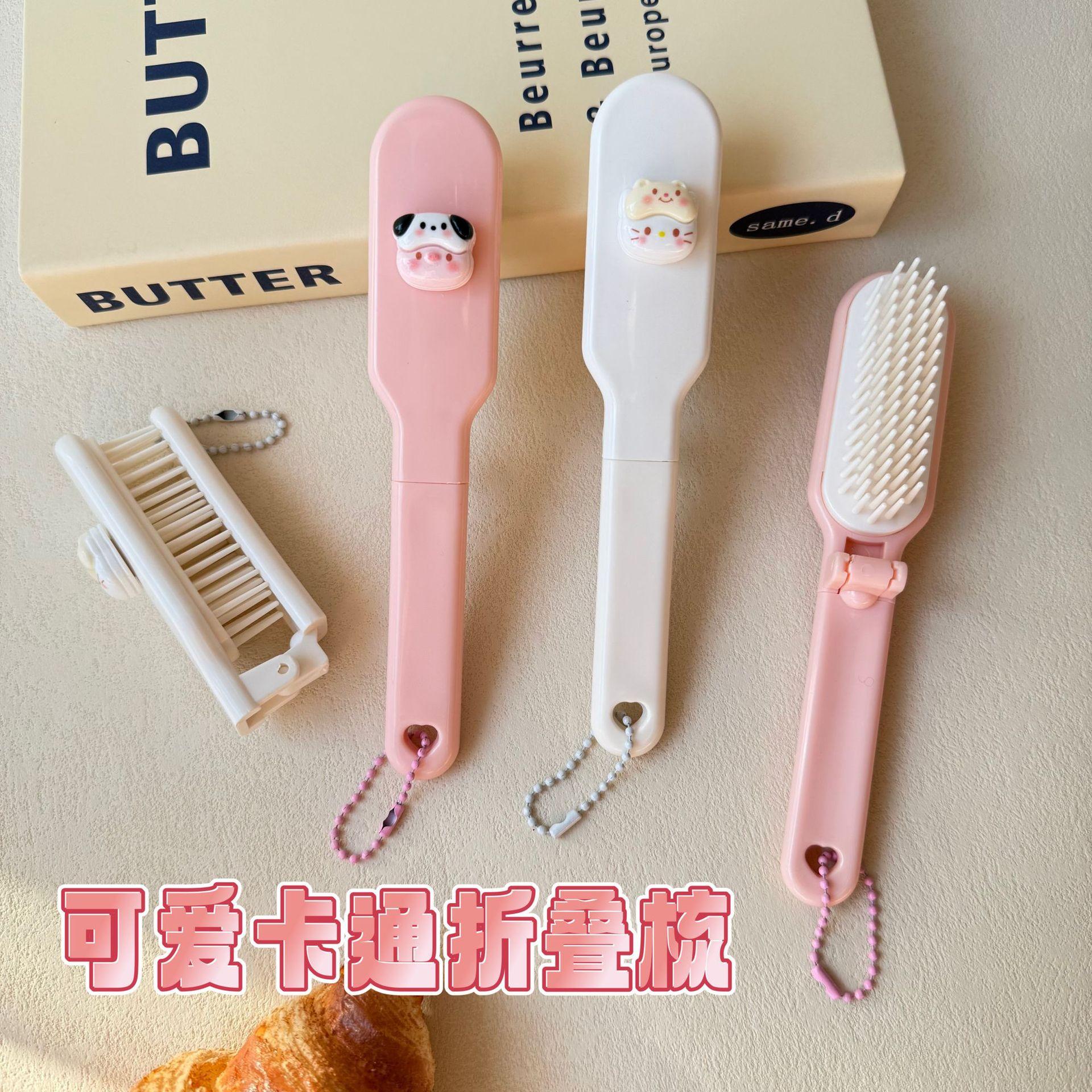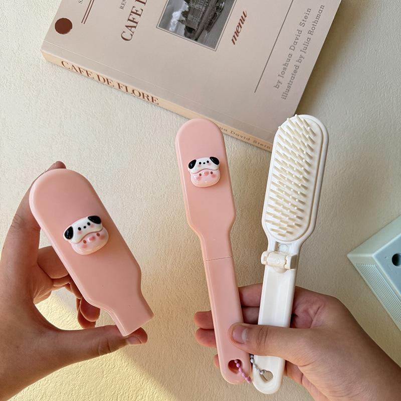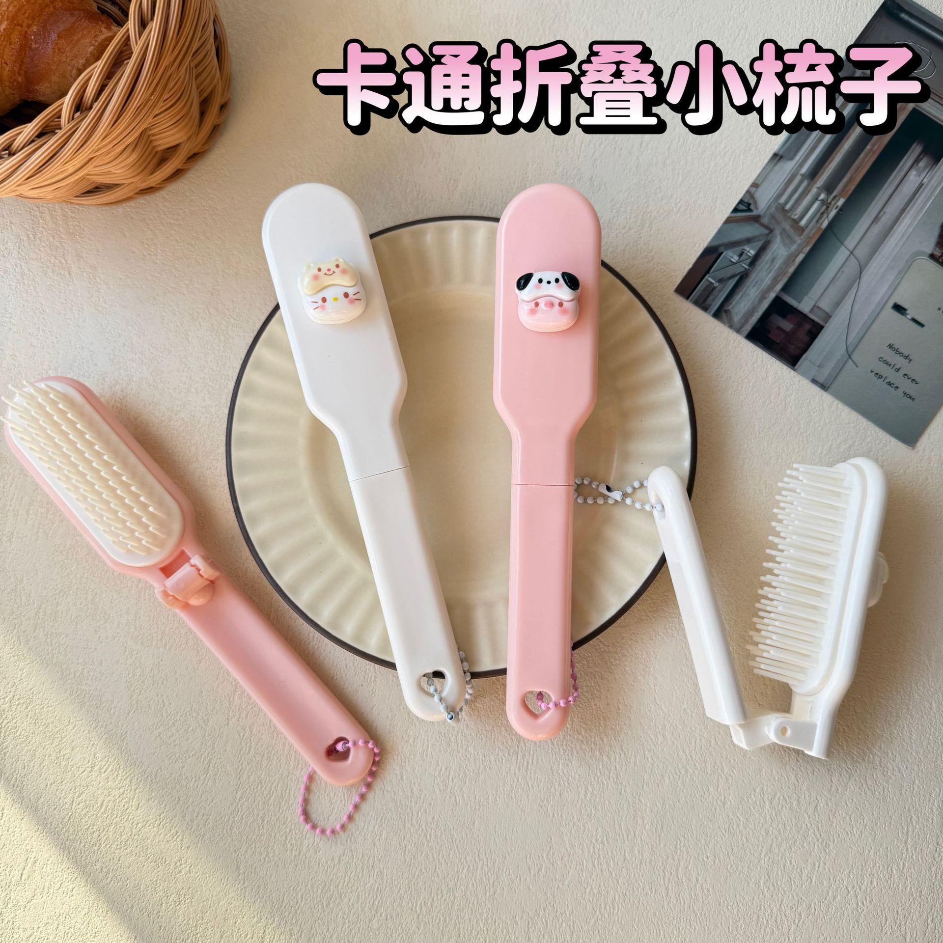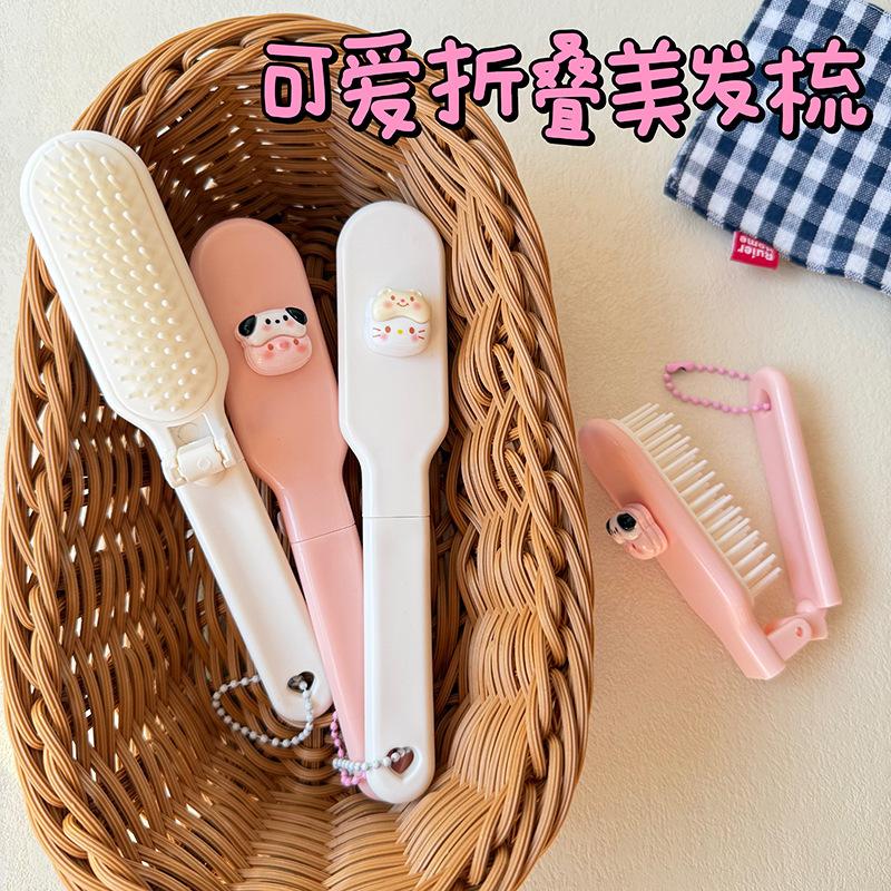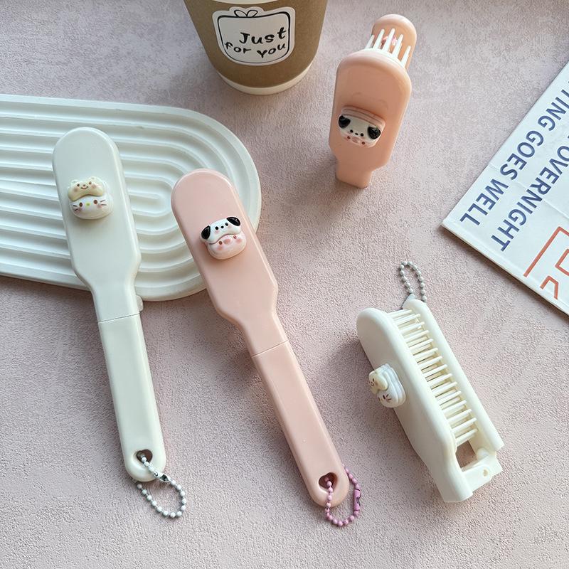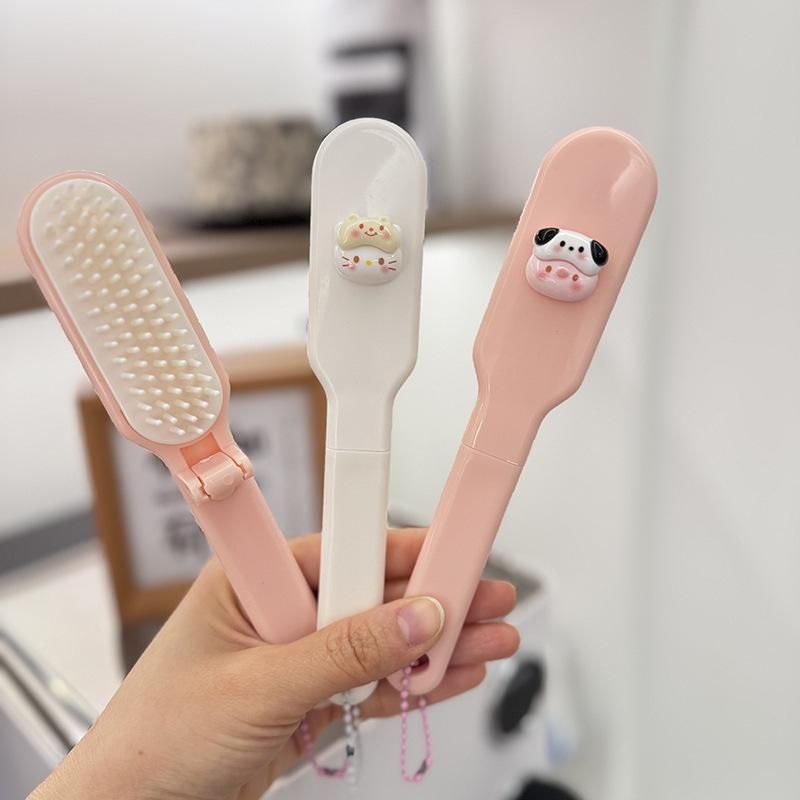 Lindo Cepillo de Pelo Plegable de Gatito Cerdito de Dibujos Animados Portátil para Mujer Peine para Cabello Largo para Estudiante Dientes Suaves Peine de Masaje