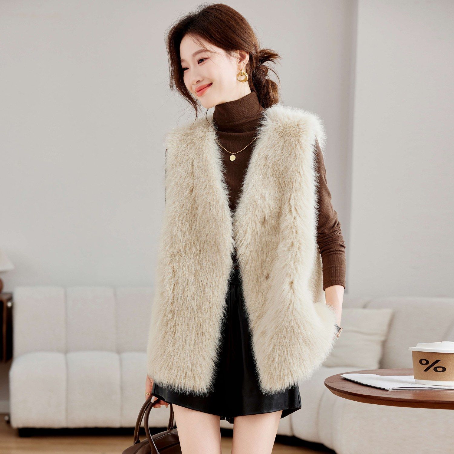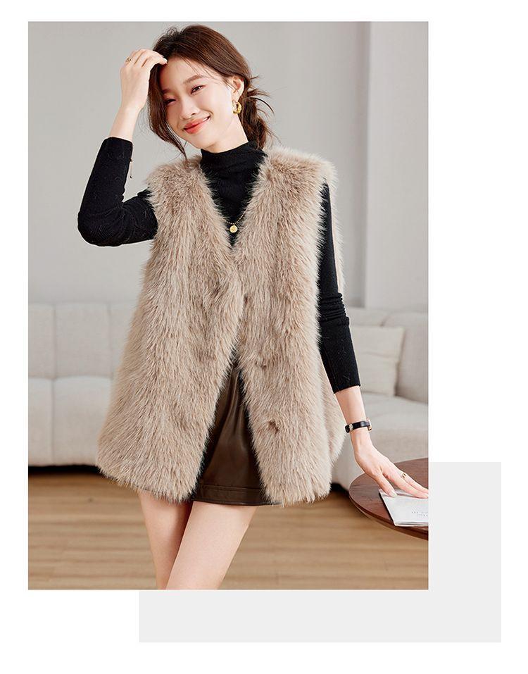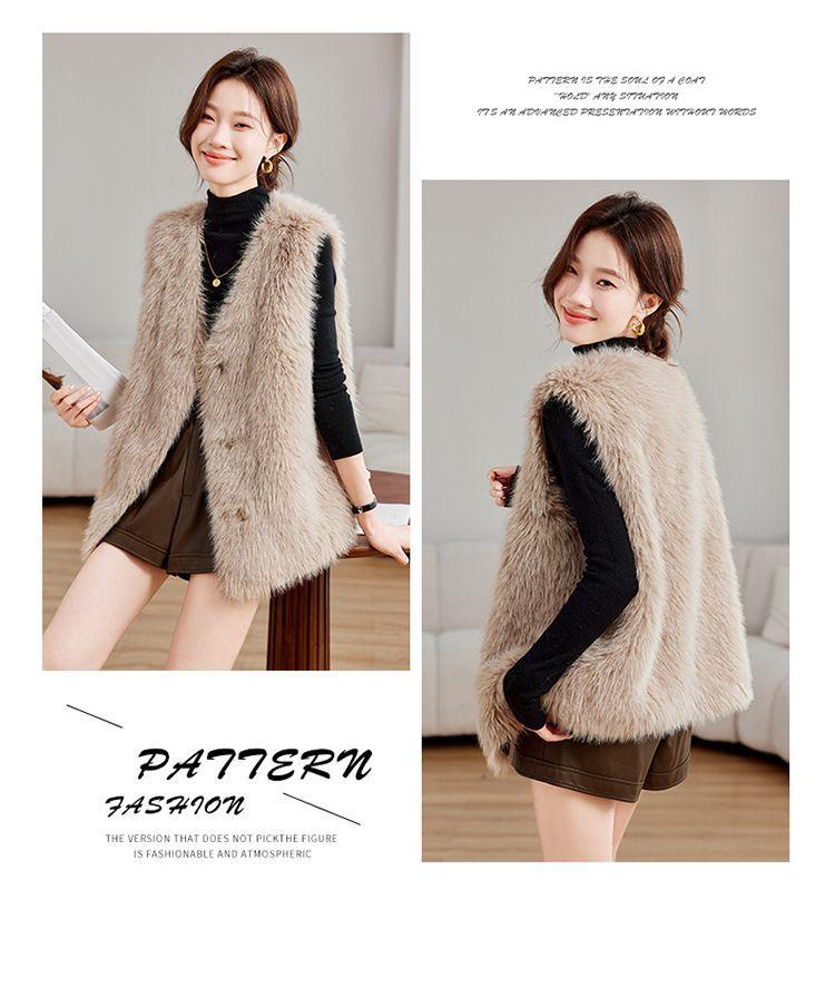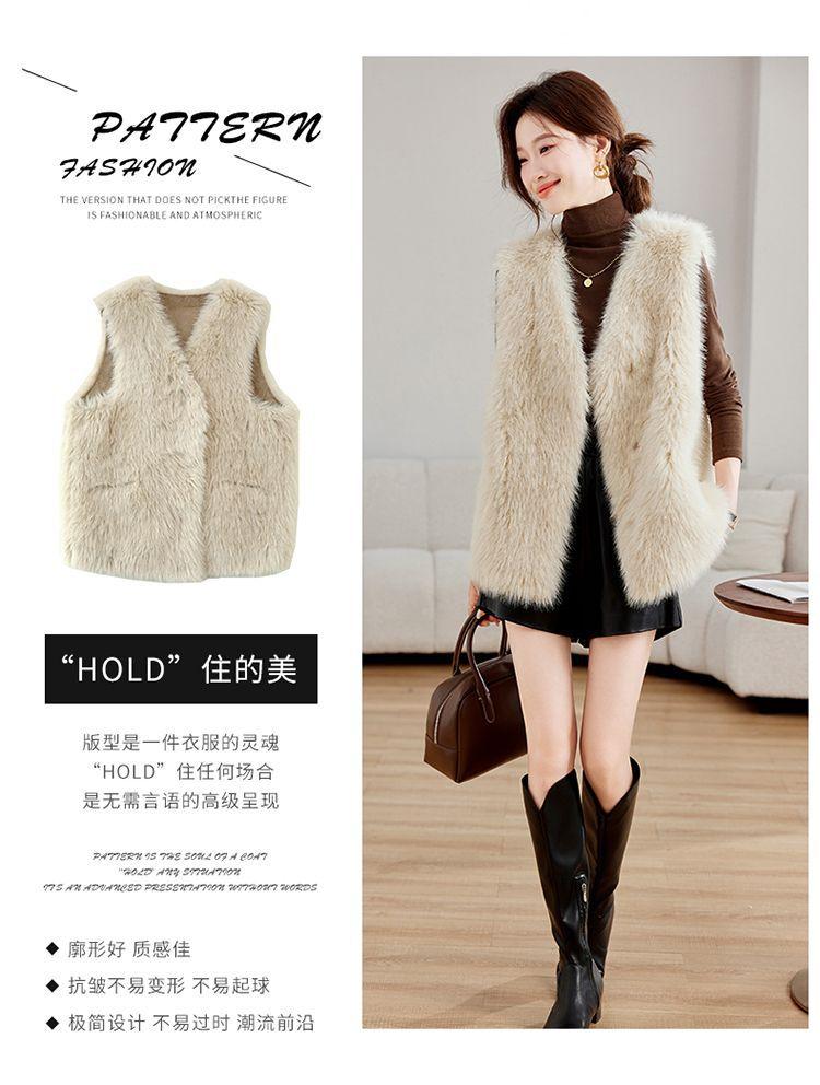 Chaleco de terciopelo de visón de otoño e invierno PP, abrigo de piel, abrigo de piel, abrigo de piel con un cuello en V corto