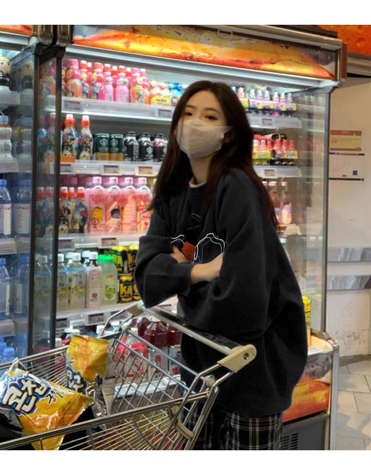 Ropa de mujer, sudadera retro americana de cuello redondo para mujer