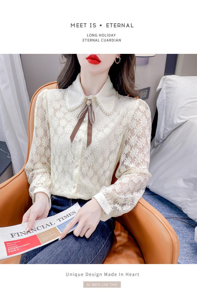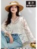Top de encaje con solapa y diamantes para mujer, nuevo estilo de otoño e invierno de 2023, ideal para combinar con el temperamento de las celebridades de Internet.