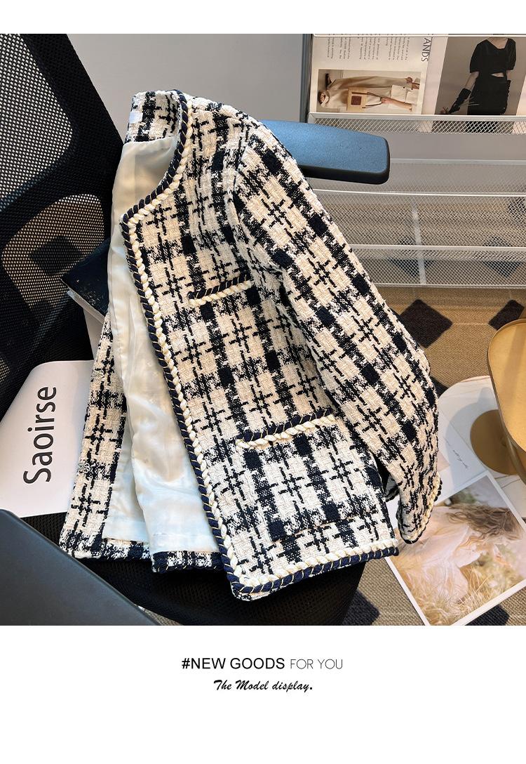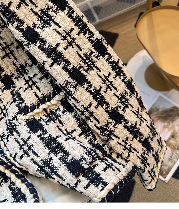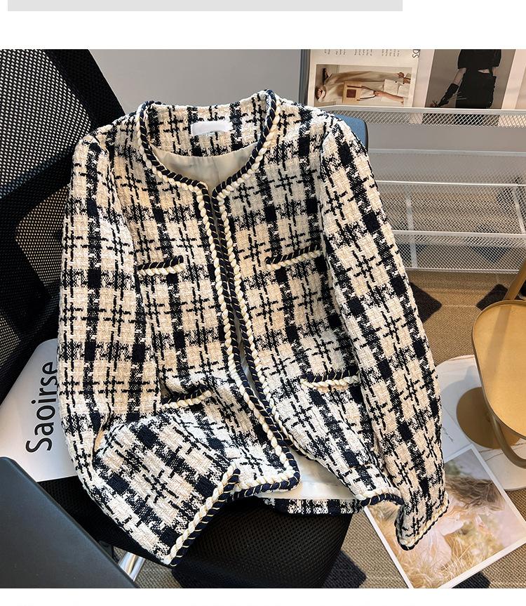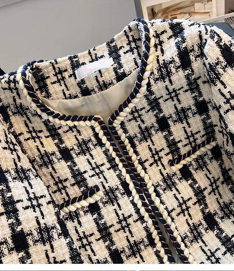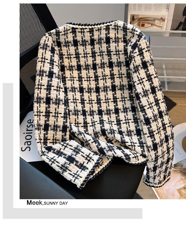 Cárdigan corto de tweed con fragancia pequeña y moderna para mujer, otoño 2024, nuevo estilo, estilo extranjero, prenda exterior antiedad.