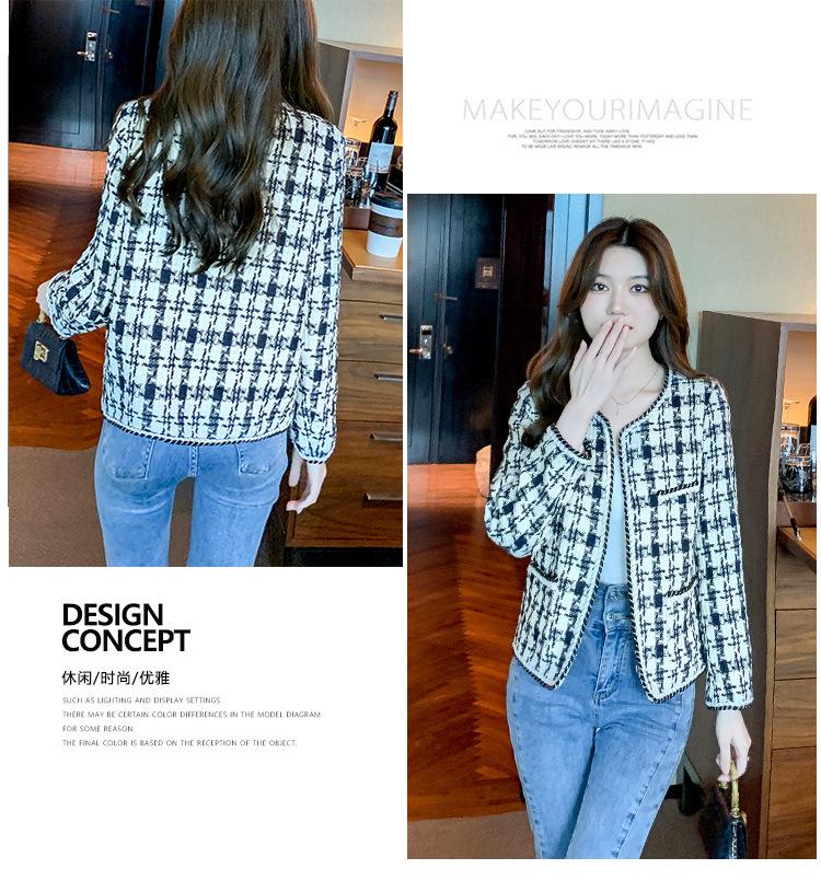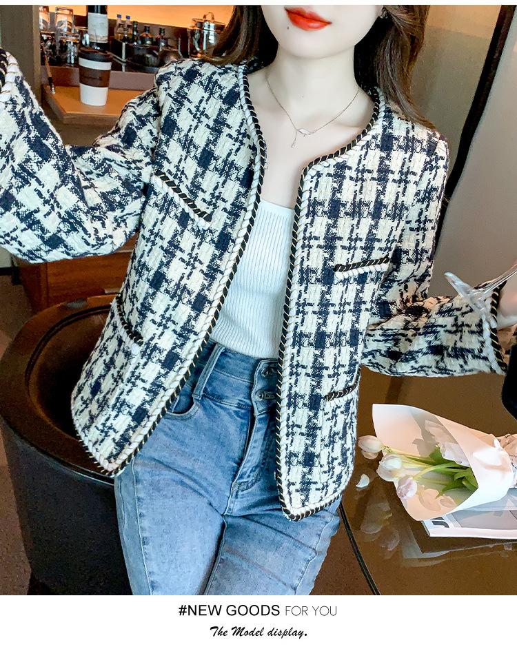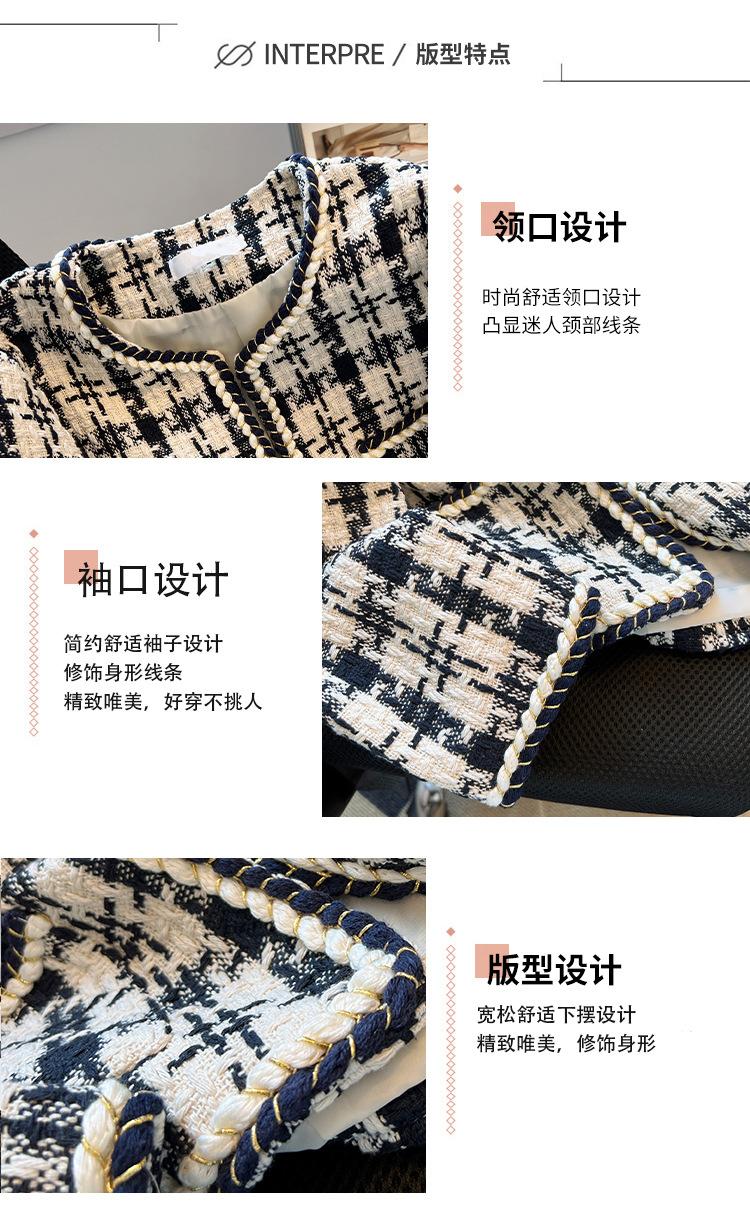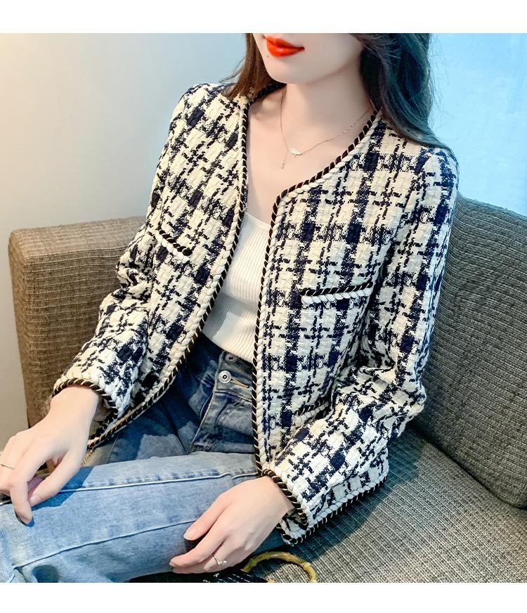 Cárdigan corto de tweed con fragancia pequeña y moderna para mujer, otoño 2024, nuevo estilo, estilo extranjero, prenda exterior antiedad.