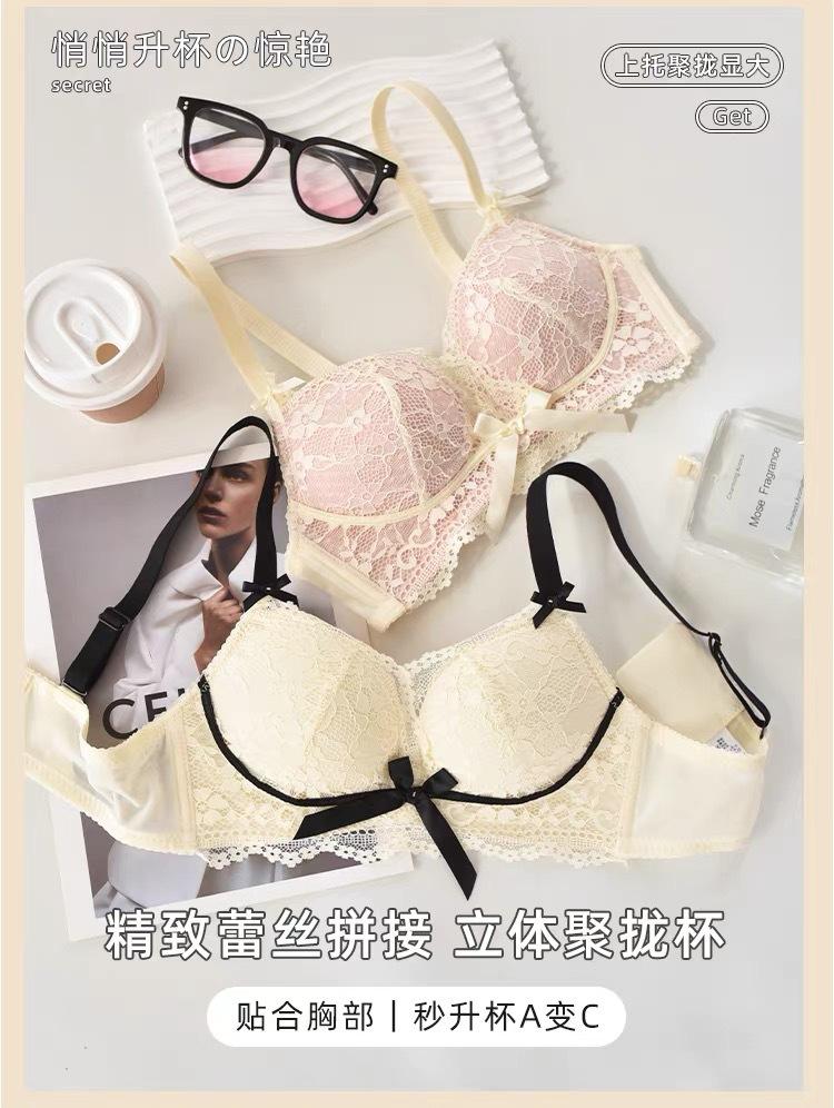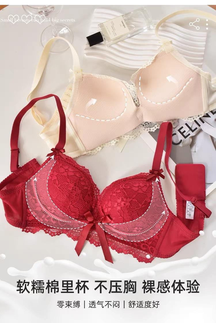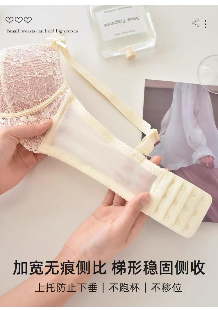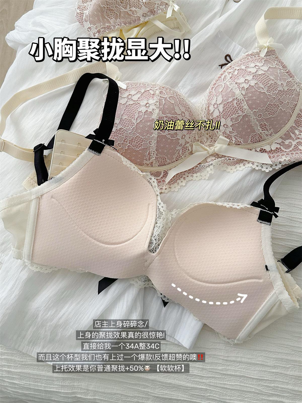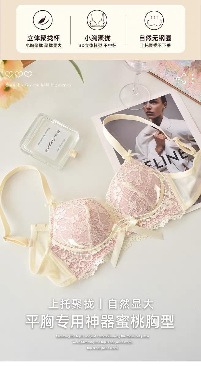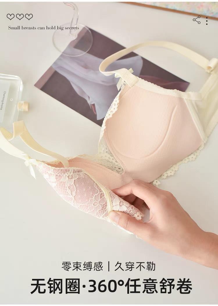 Sujetador de encaje sexy puro sin aros de acero grande para mujer con fruncido de pecho pequeño en posición C