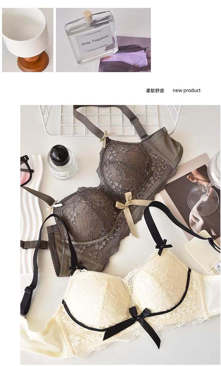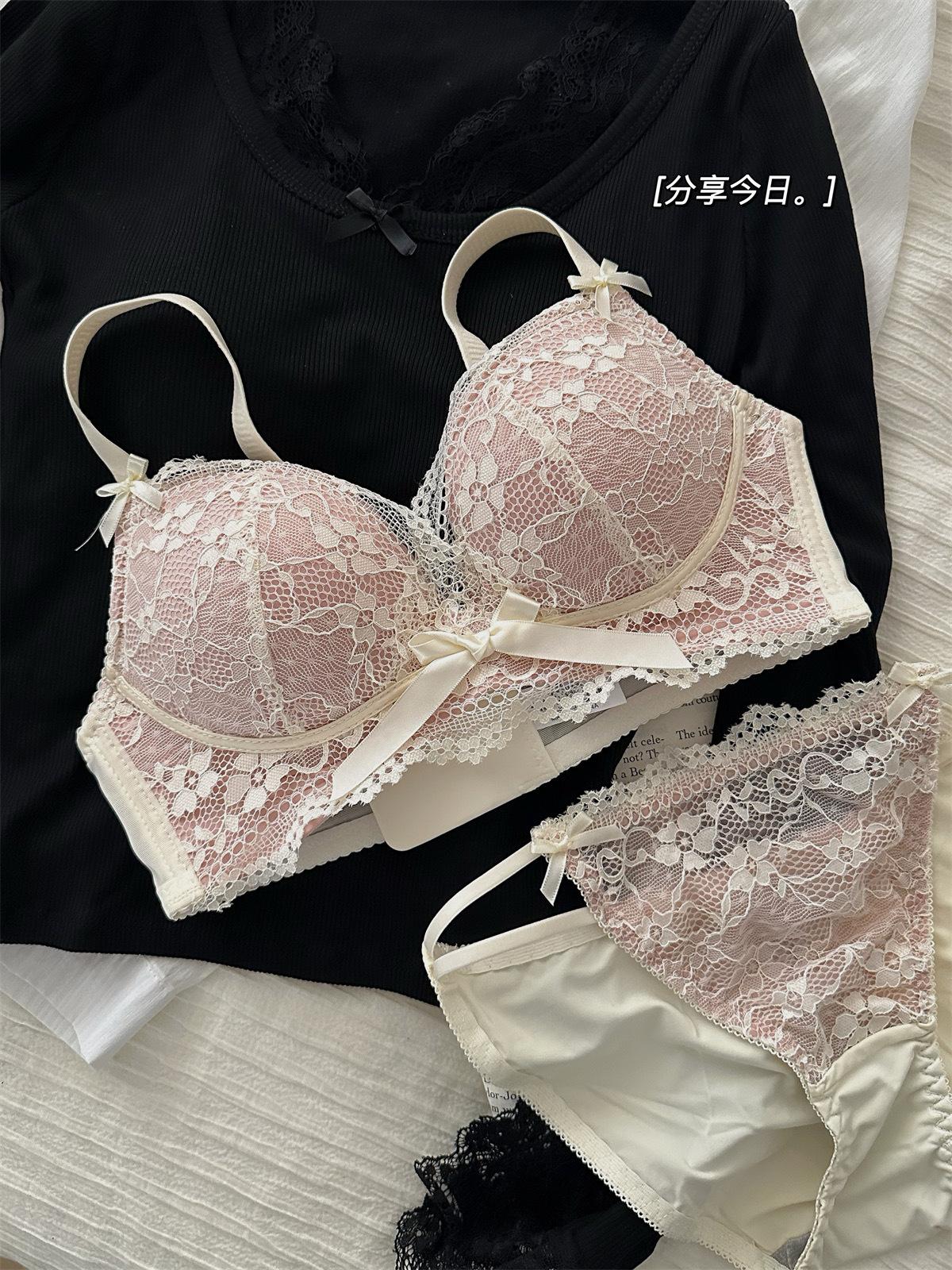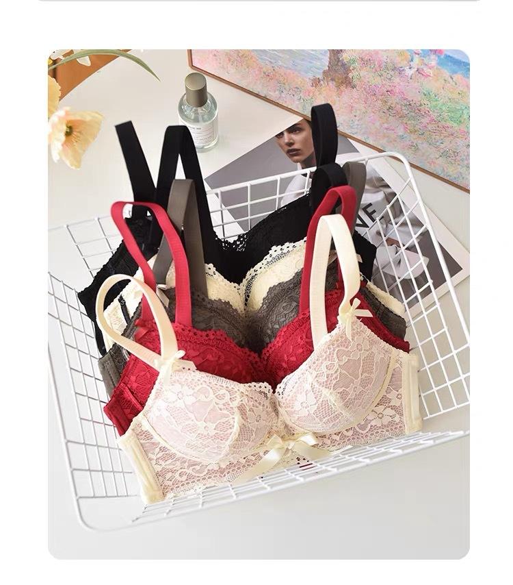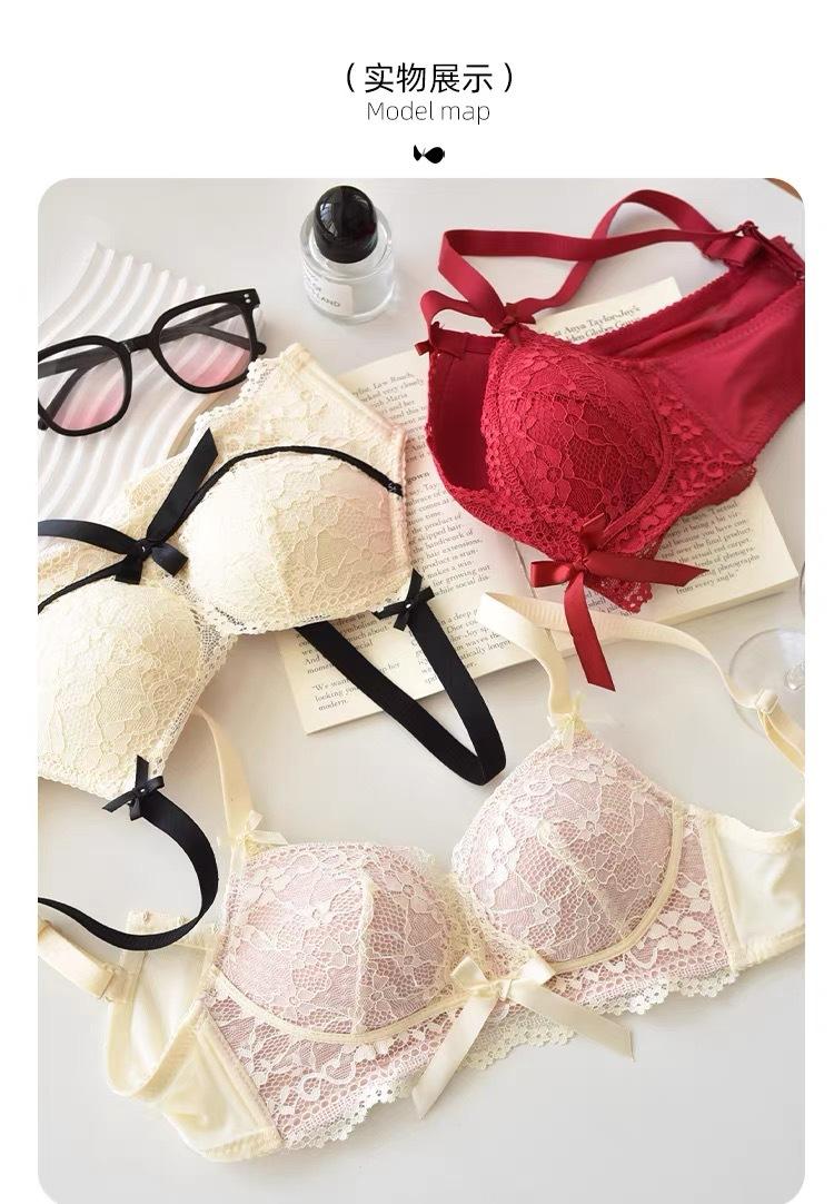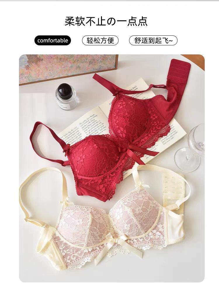Sujetador de encaje sexy puro sin aros de acero grande para mujer con fruncido de pecho pequeño en posición C