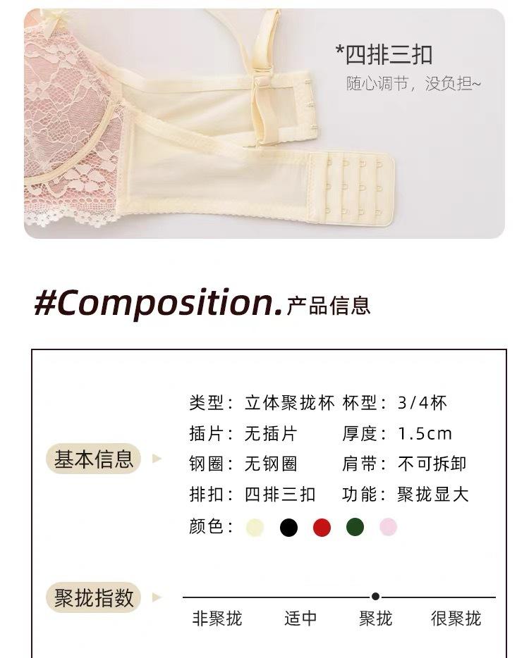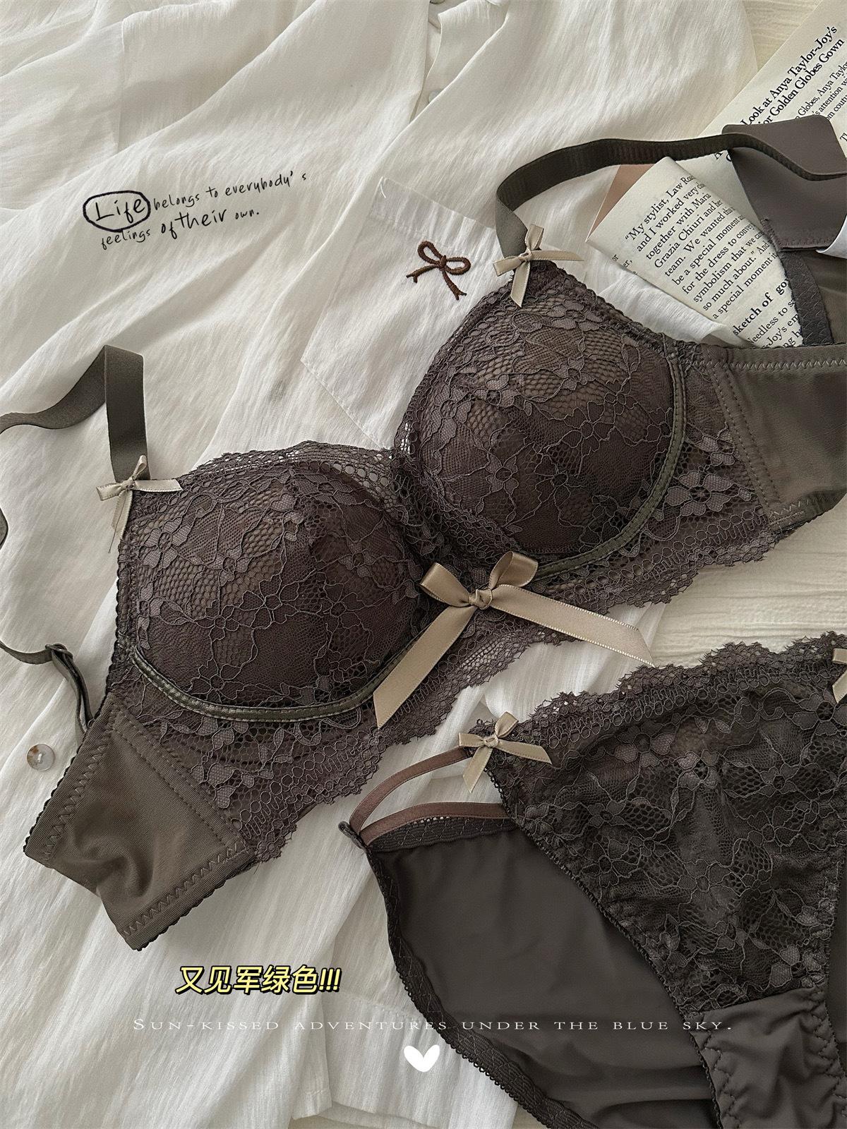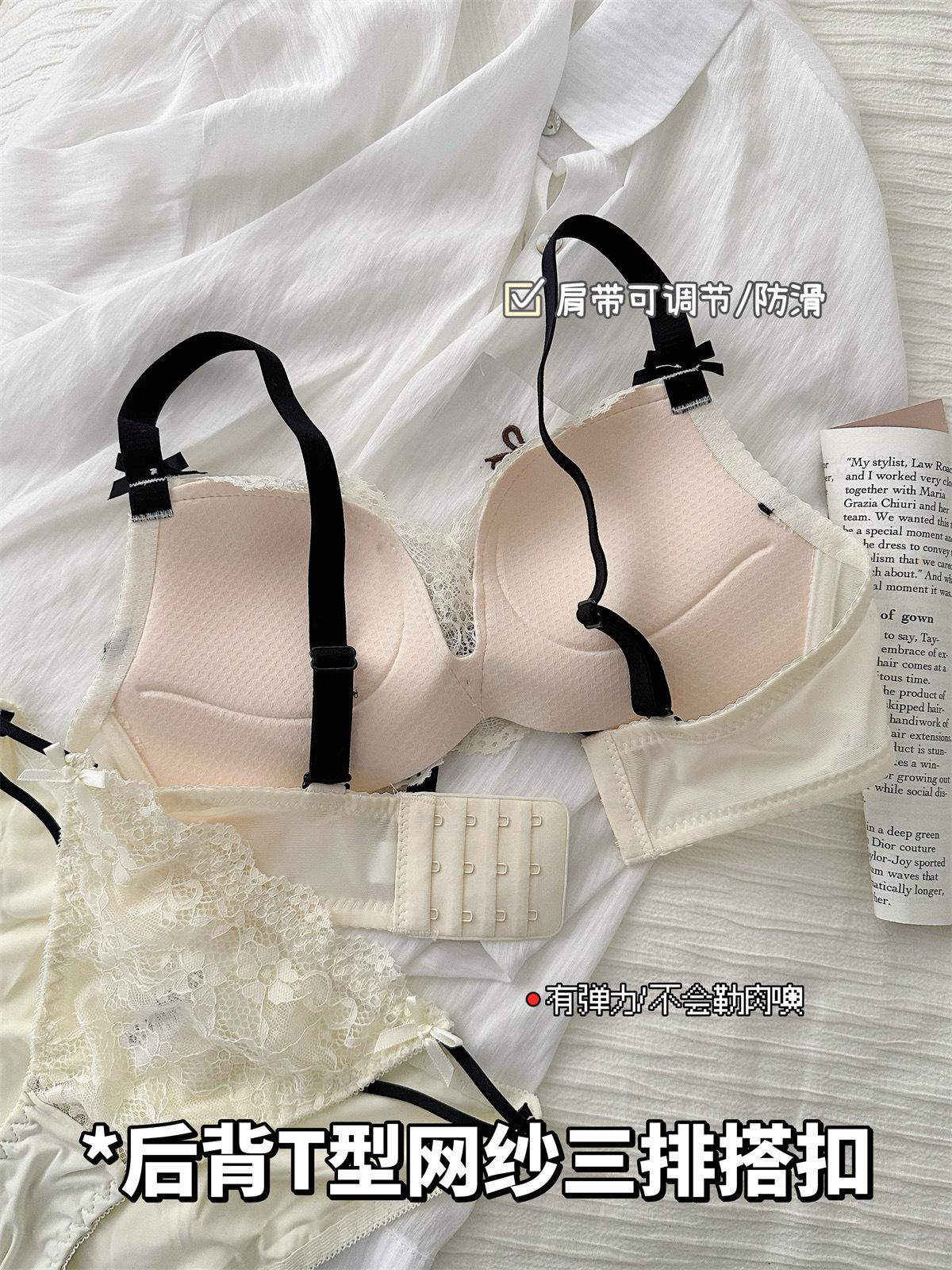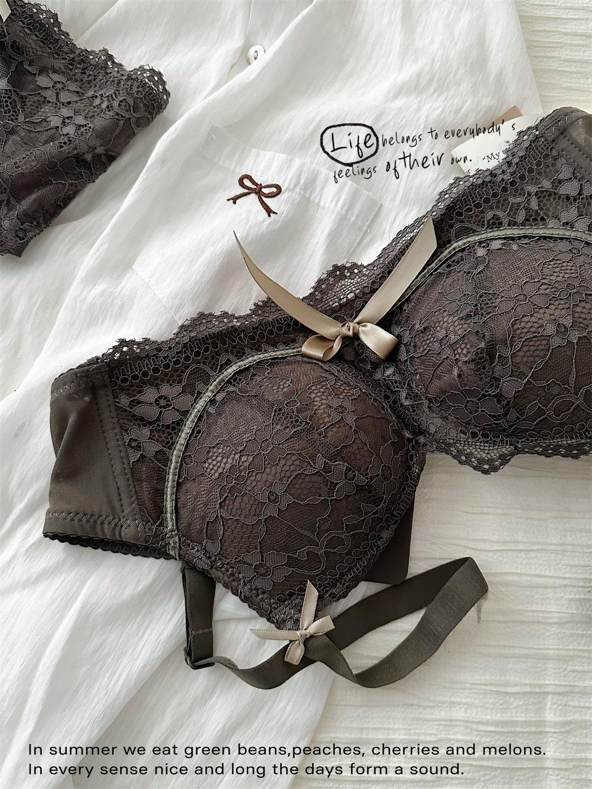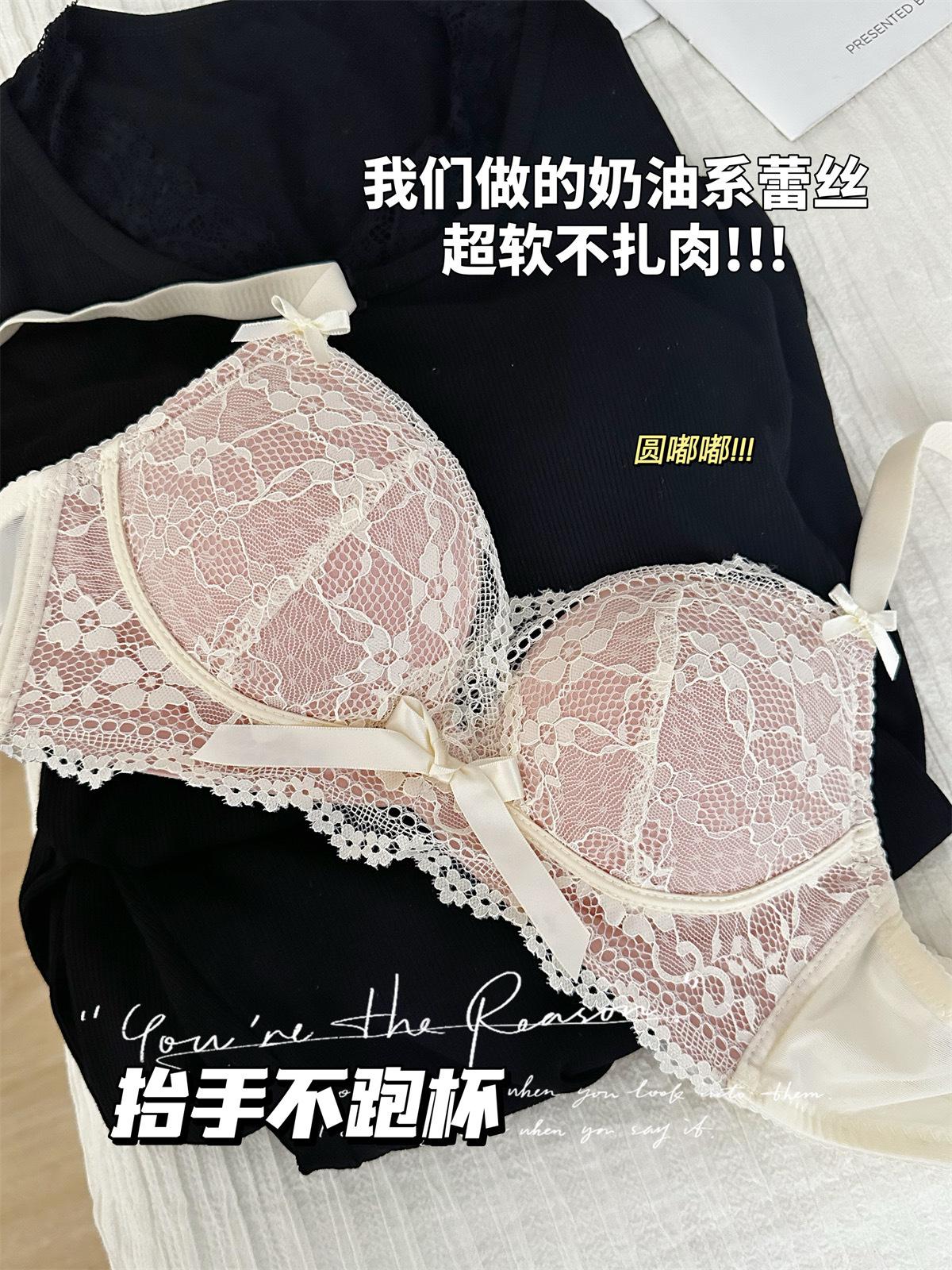 Sujetador de encaje sexy puro sin aros de acero grande para mujer con fruncido de pecho pequeño en posición C