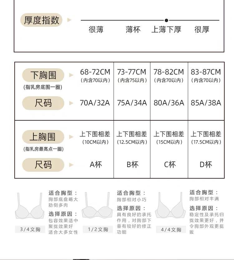 32/70ab through cup, 34/75ab through cup, 36/80ab through cup, 38/85ab through cup