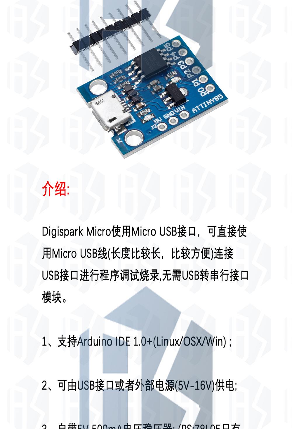 Placa de desarrollo Digispark Kickstarter ATTINY85 micro USB compatible con UNO R3