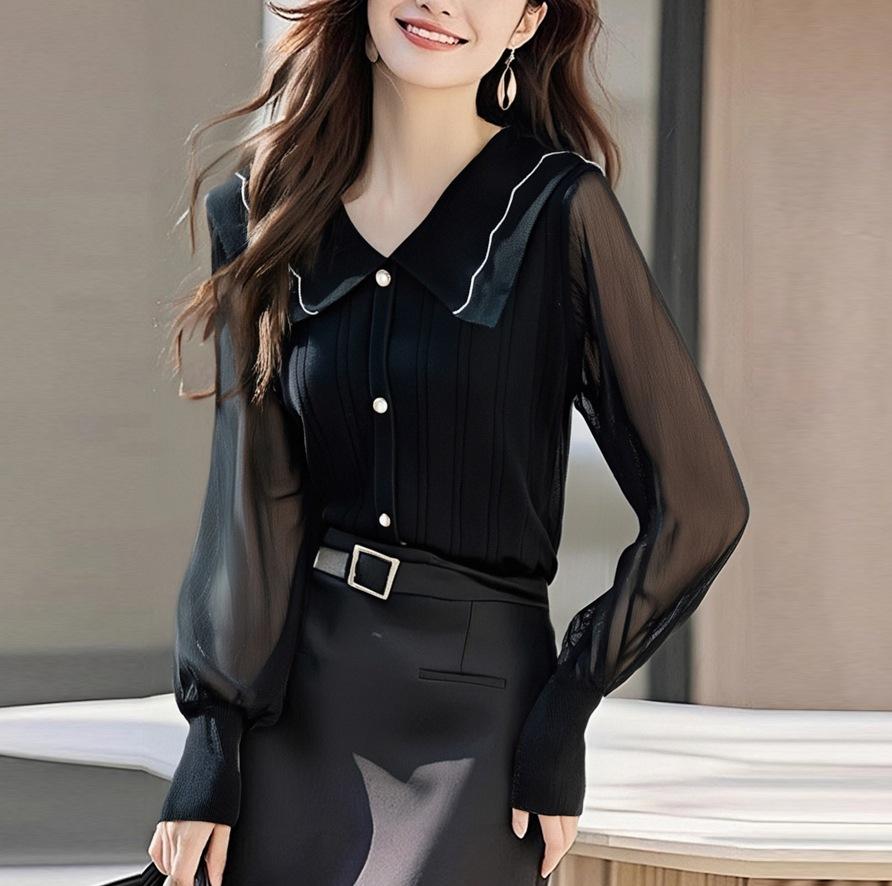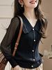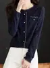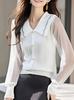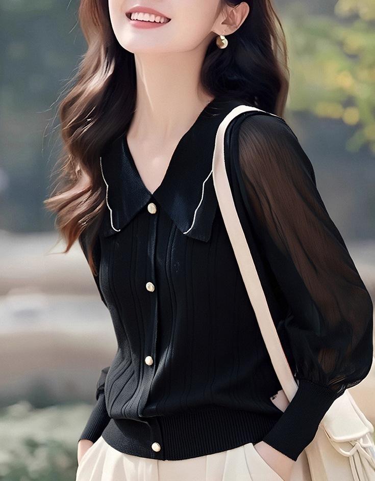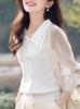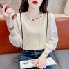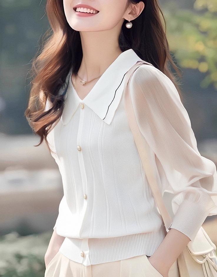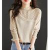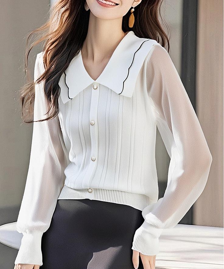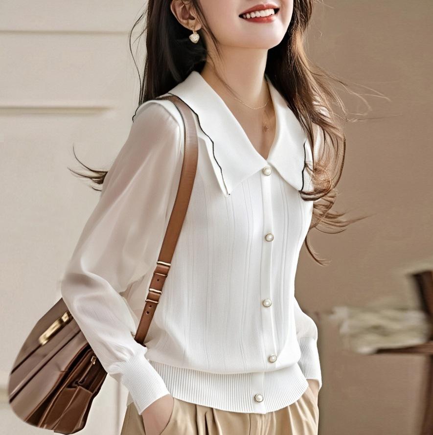 Suéter de Punto con Cuello de Muñeca Blanco Nuevo de Primavera y Otoño 2025 Reductor de Edad Encaje Styky Manga Larga Costuras Top Suéter Base