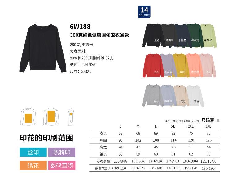 Sudadera de algodón puro de 300 g con cuello redondo para otoño e invierno, con logotipo impreso personalizado, ropa de trabajo, chaqueta holgada con hombros descubiertos, uniforme de clase 188